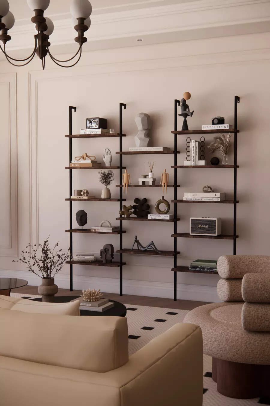 Тип: Монтиран на стена Материал: Плоскостлaмен Цвят: Кафяв Височина: 180 см Ширина: 180 см Дълбочина: 20 см Брой рафтове: 14 Материал на корпуса: Плоскостлaмен Стил: Модерен Тема / Стил: Модерен Произход: TR Особеност: С рафтове