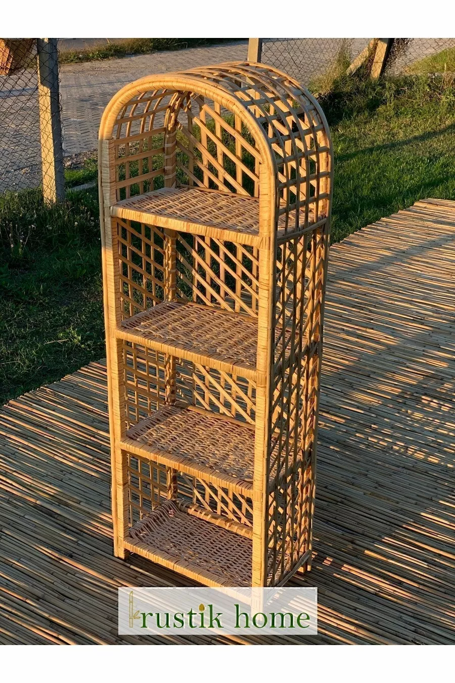 Тип: Класически Материал: Ратан Цвят: Бежов Височина: 140 см Ширина: 143 см Дълбочина: 50 - 60 см Брой рафтове: 4 Материал на корпуса: Дърво Стил: Ретро Тема / Стил: Скандинавски Произход: TR Характеристика: С рафтове