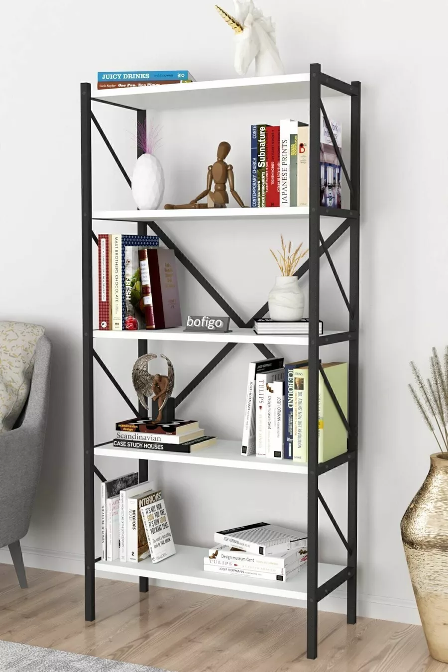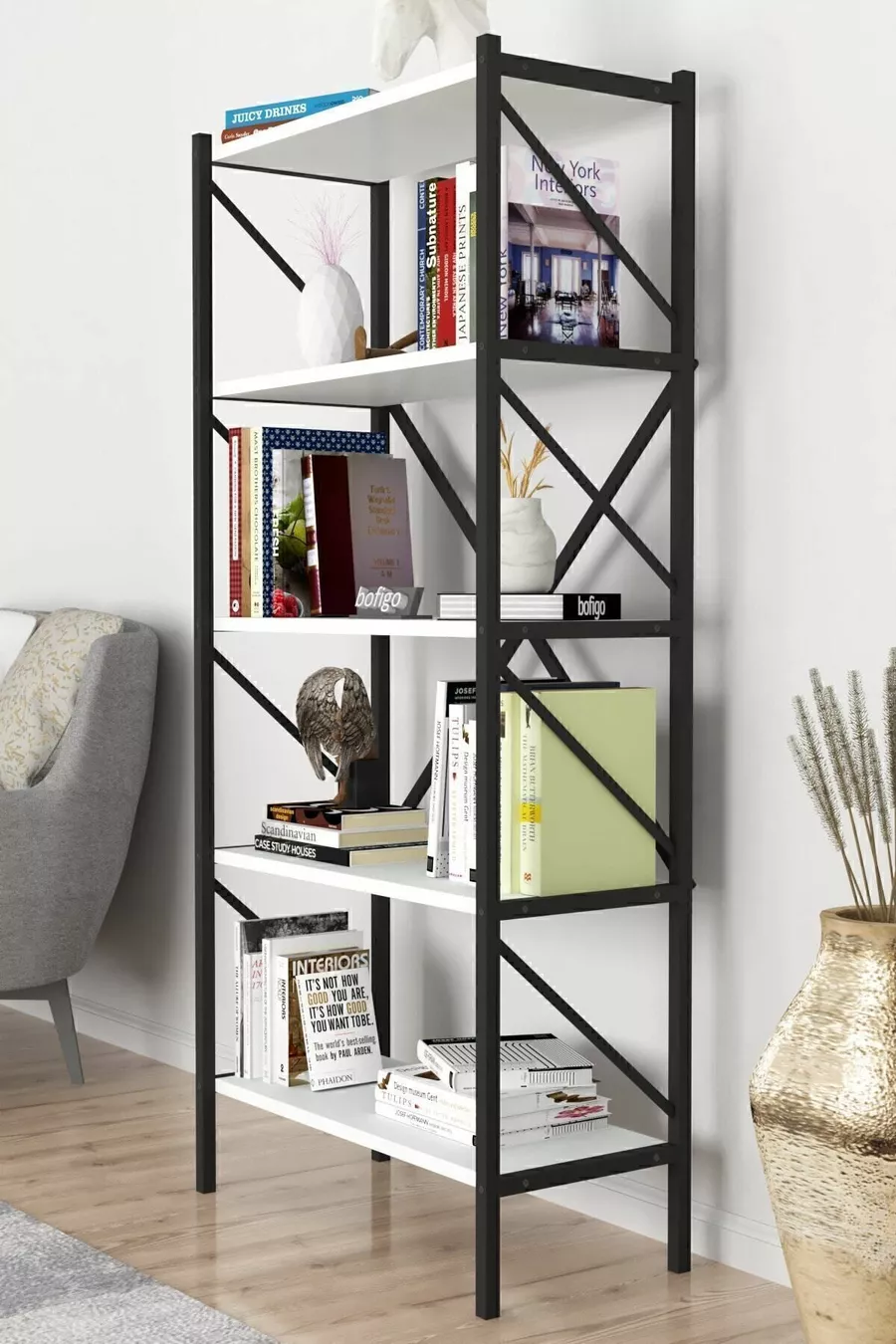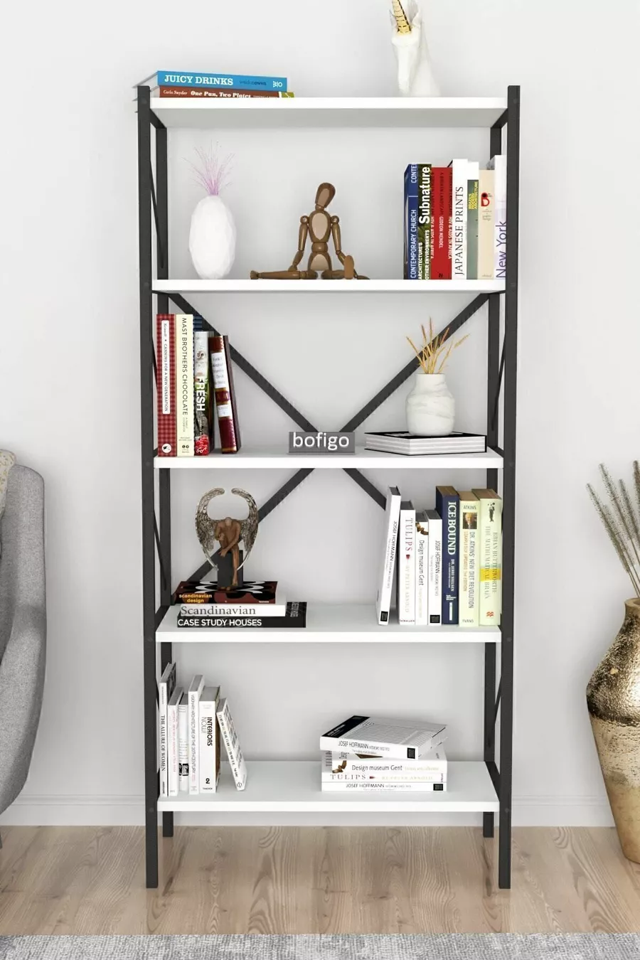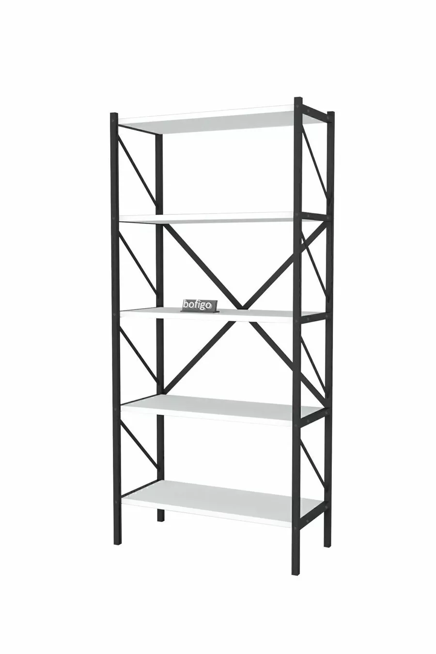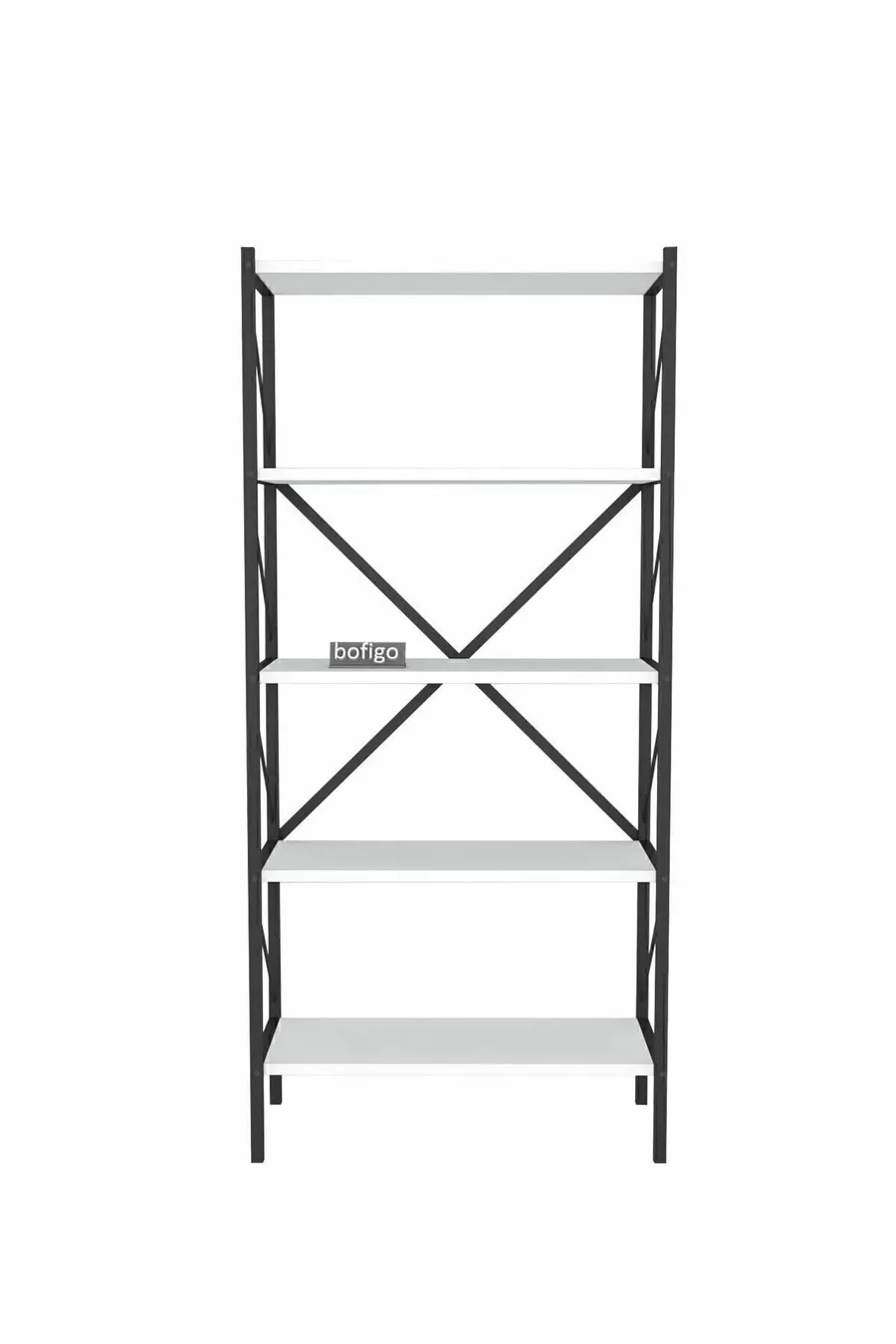 Декоративен 5-рафтов метален библиотечен шкаф бял