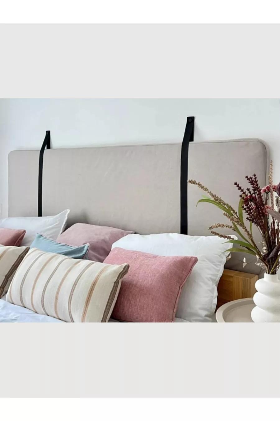Декоративна възглавница с кожени детайли, държач за таблата на леглото - 2 БРОЯ см колан