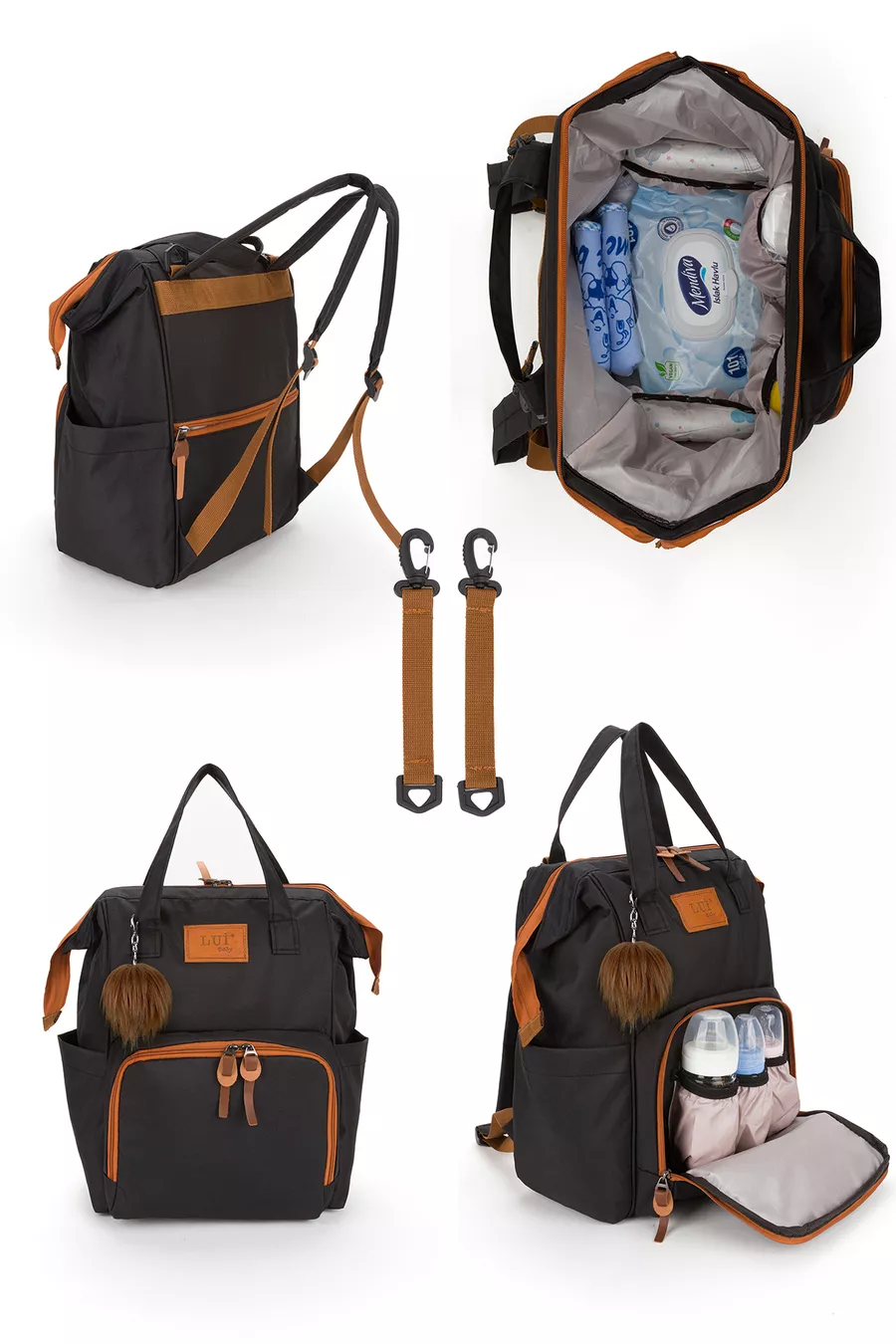 Детска раница за майки с термален държач за бутилки и приспособление за закачане на детска количка