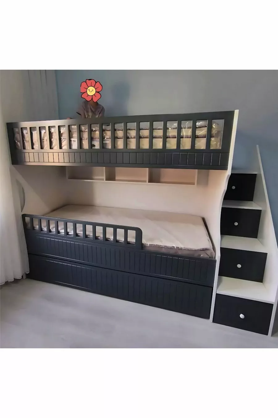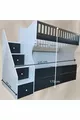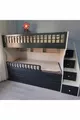 Детско легло на три нива с модел бял антрацит и резба