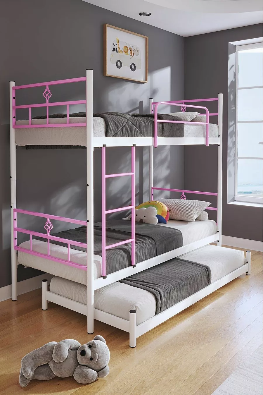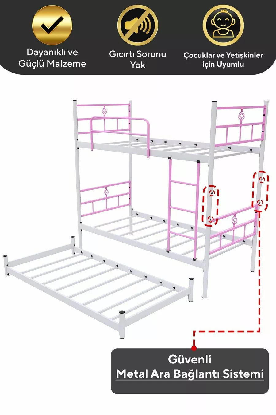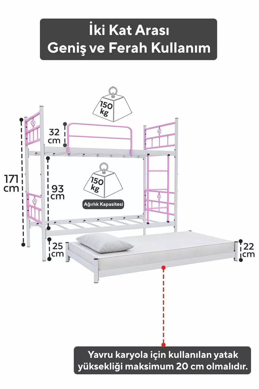 Цвят: Розов Материал: Метал Размер: Двоен Размери: 90 x 200 Гаранционен срок: 2 години Стил: Класически Тема / Стил: Класически С дъщерно легло: Да Характеристика: Дълго