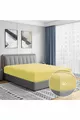 Материал: Памучен трикотаж Съдържание на пакета: 1 брой Вид чаршаф: С ластик Цвят: Жълт Размер: Двоен Дизайн: Едноцветен Характеристика: Дишащ Състав на материала: 100% памук Инструкции за пране: Тип 2 Произход: Турция