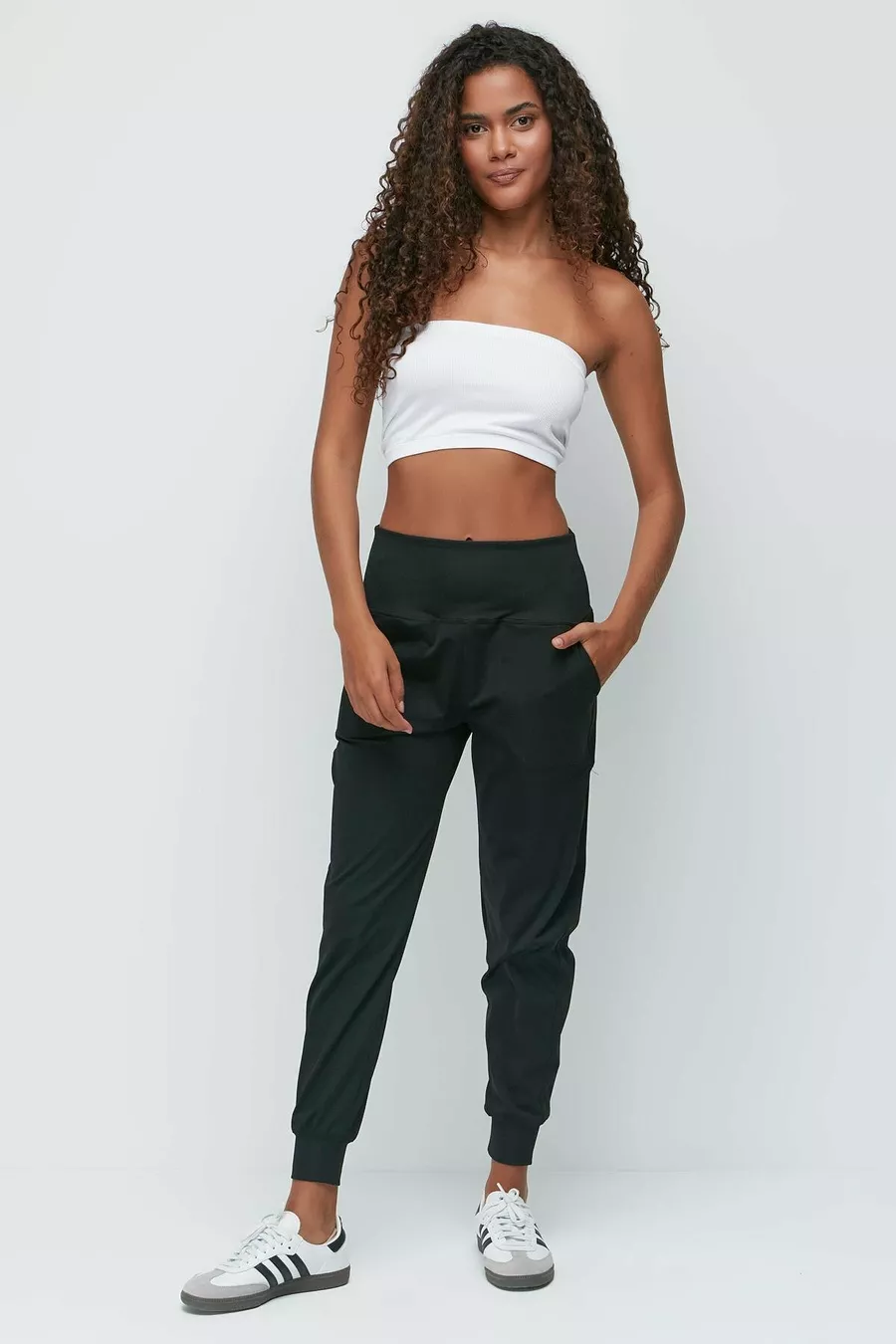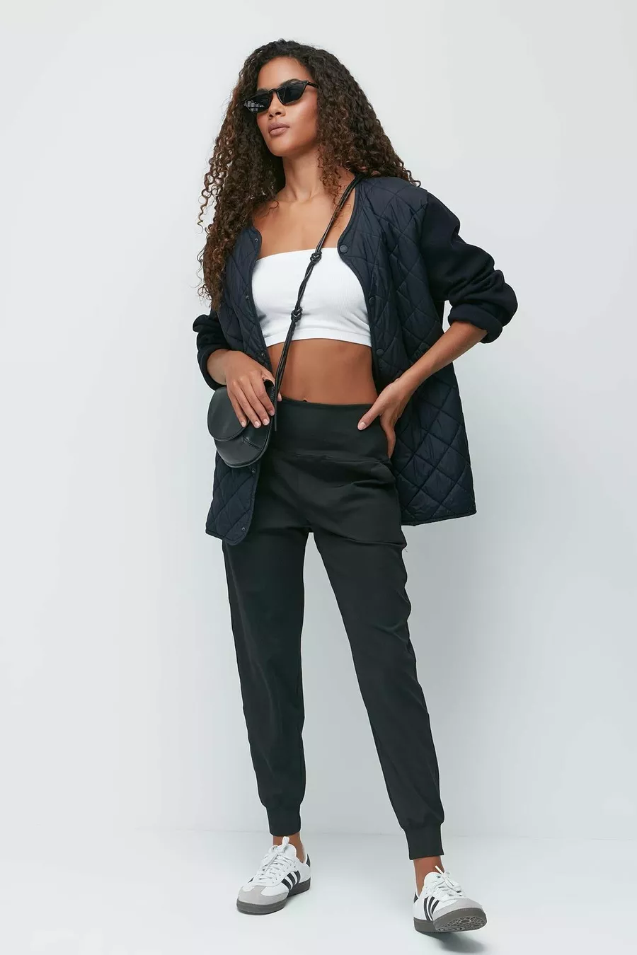Долнище за спортен екип с висока талия и маншет, модел , черно
