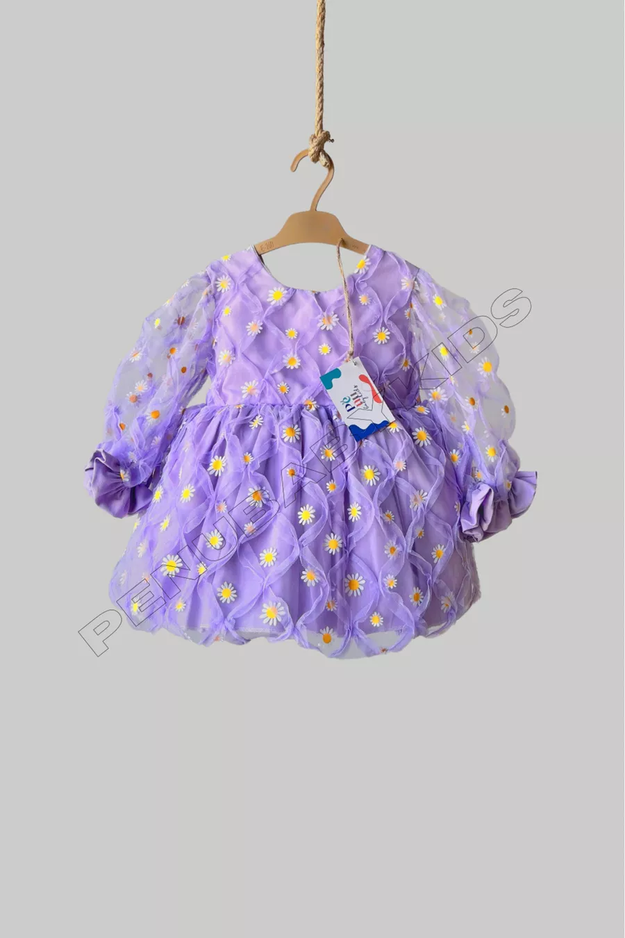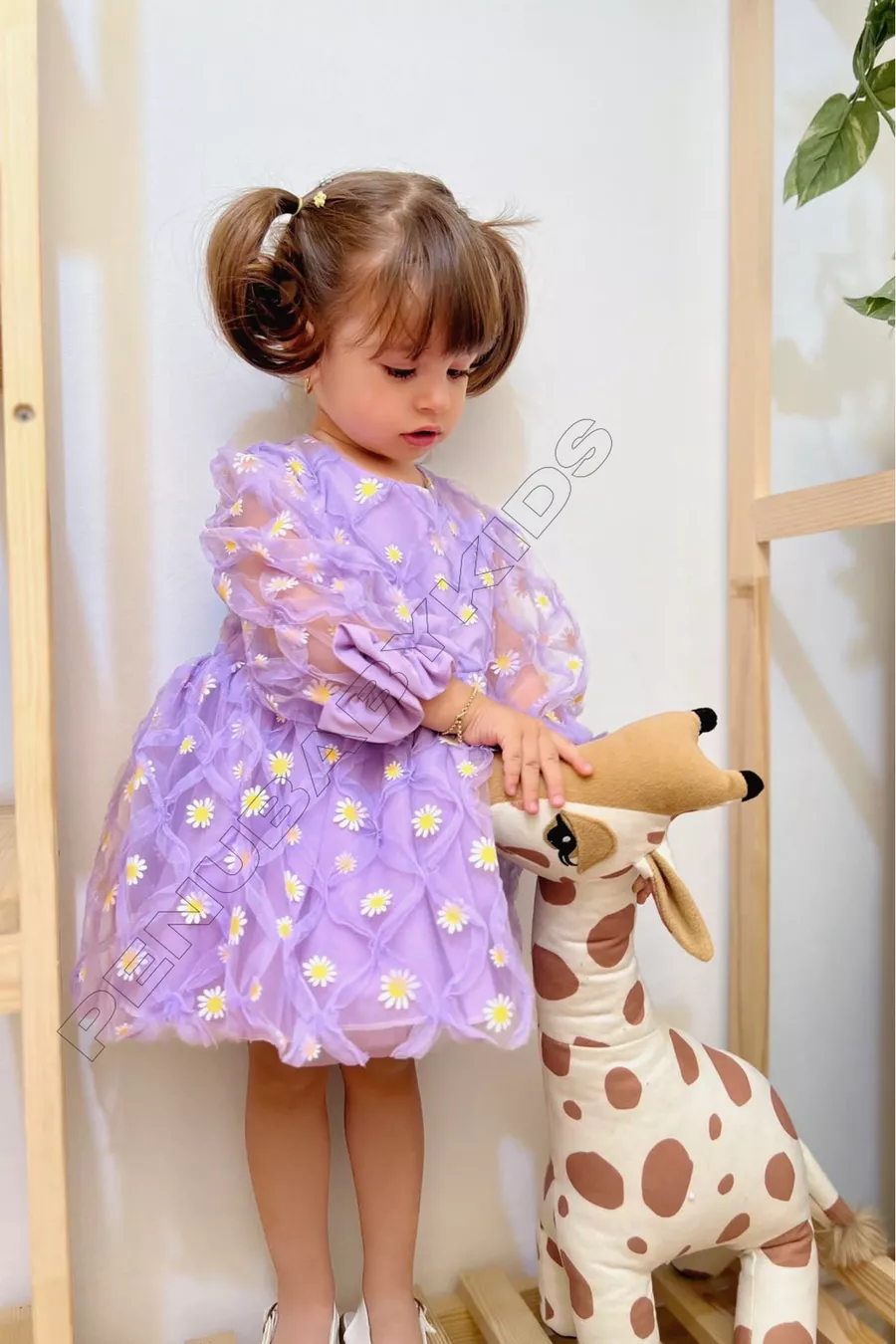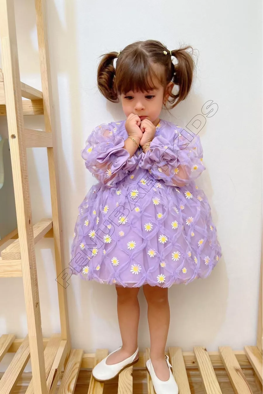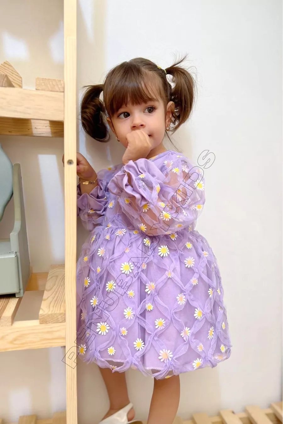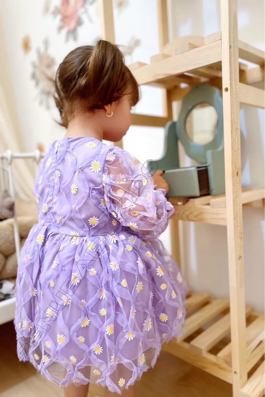 Дълга рокля за бебе момиче с ризи с лилави маргаритки