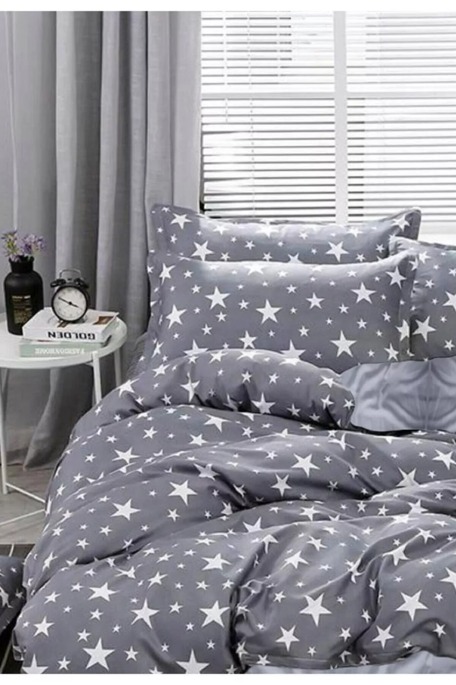 Единичен спален комплект с ластик за чаршаф, двустранен, със звездички