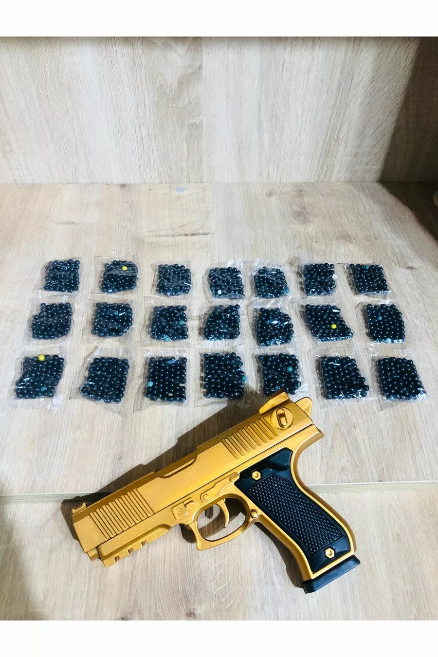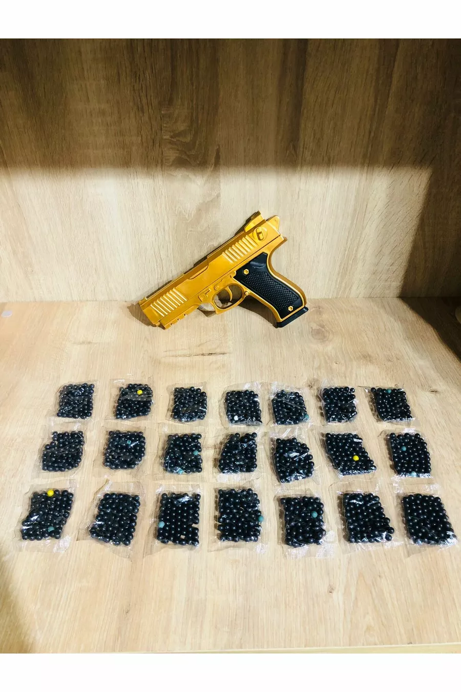 Златисто-черен и сребрист с мъниста играчечен пистолет 1 бр. + пакет мъниста