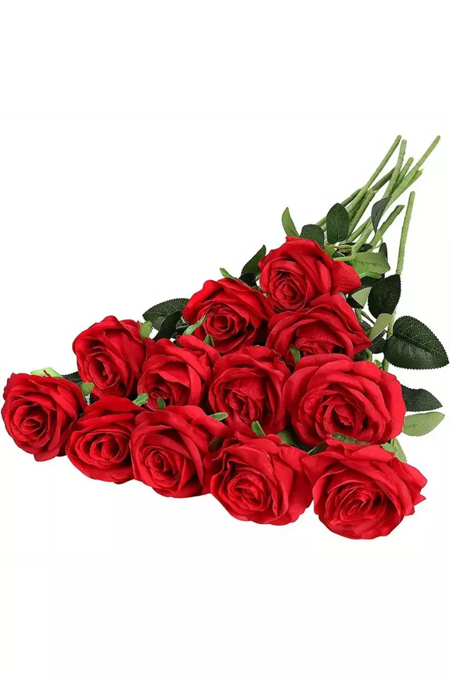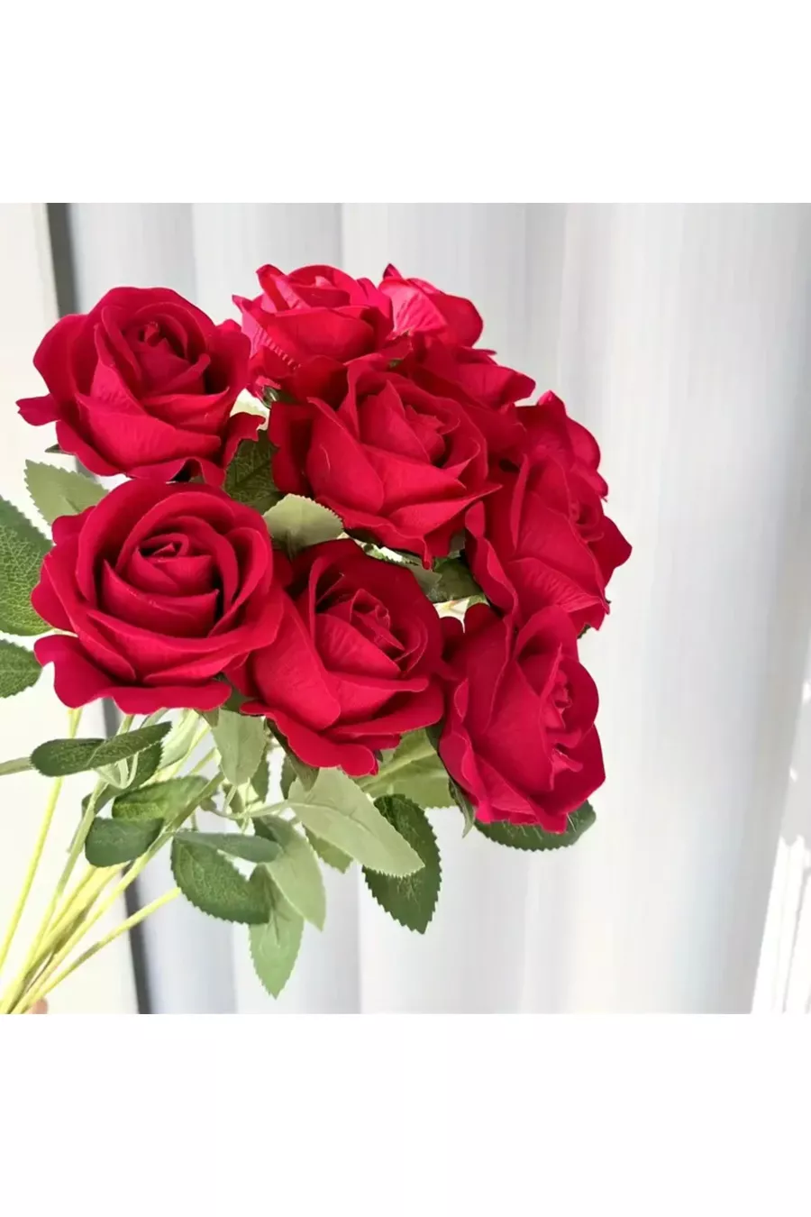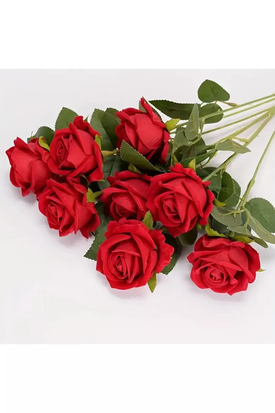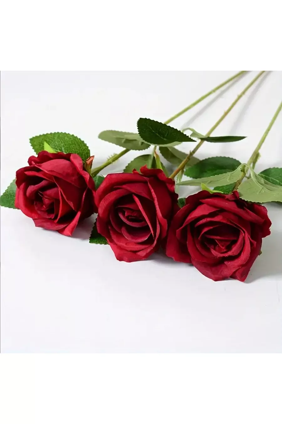 Изкуствена кадифена роза броя червена см – Изкуствени цветя за декорация, украшение за маса, фон