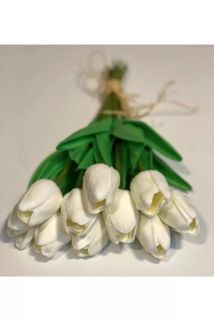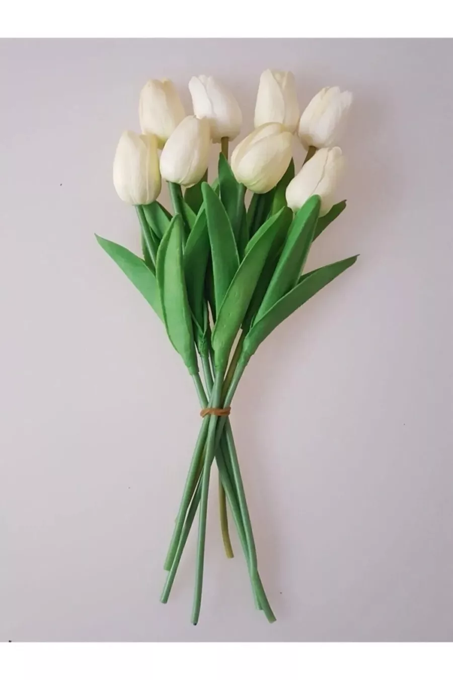 Изкуствени лалета с мокра текстура, комплект от 8, цвят счупено бяло