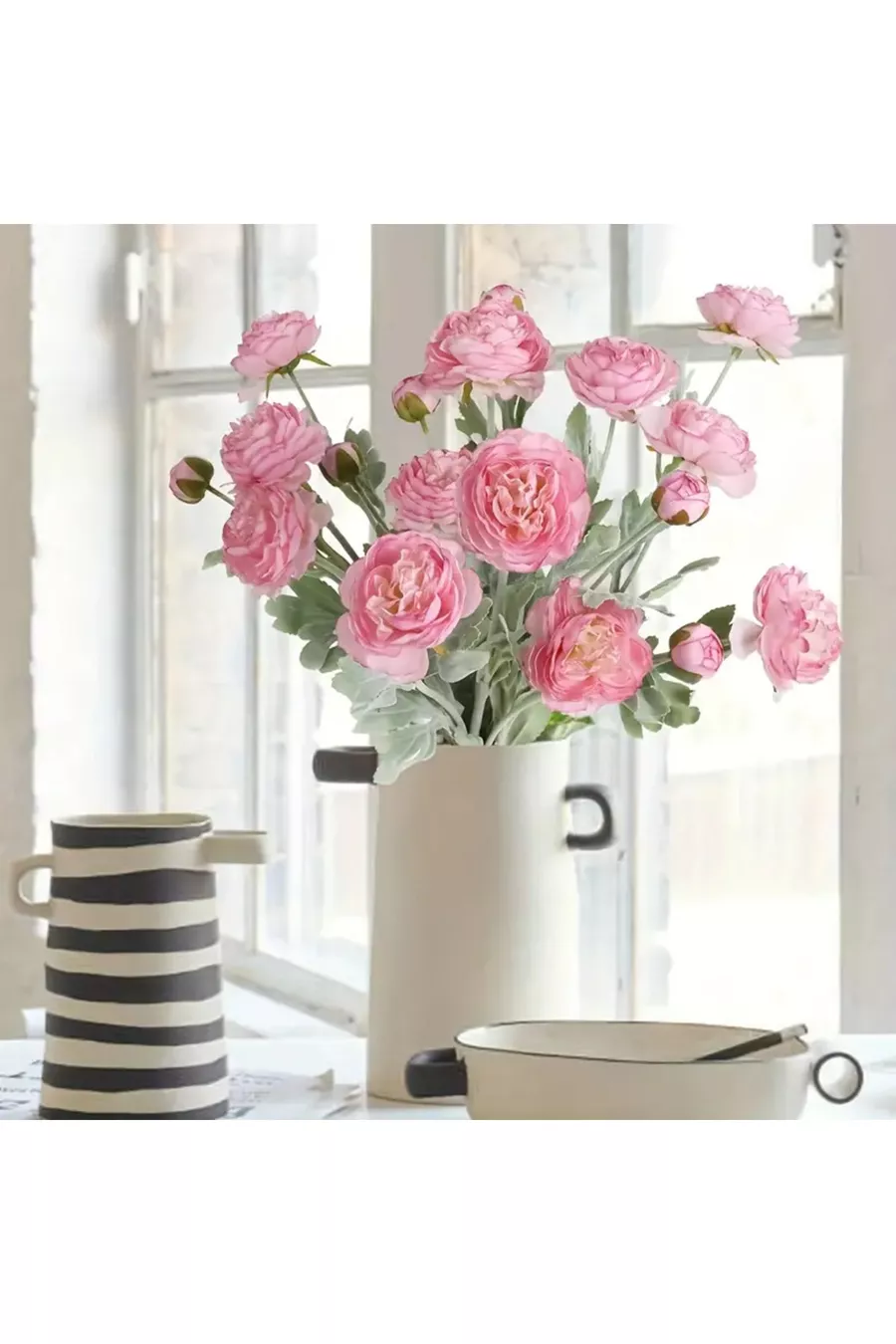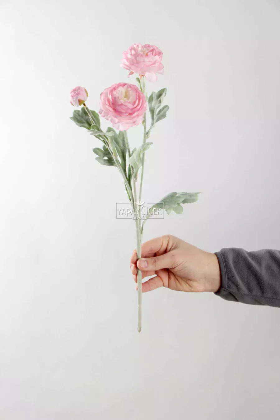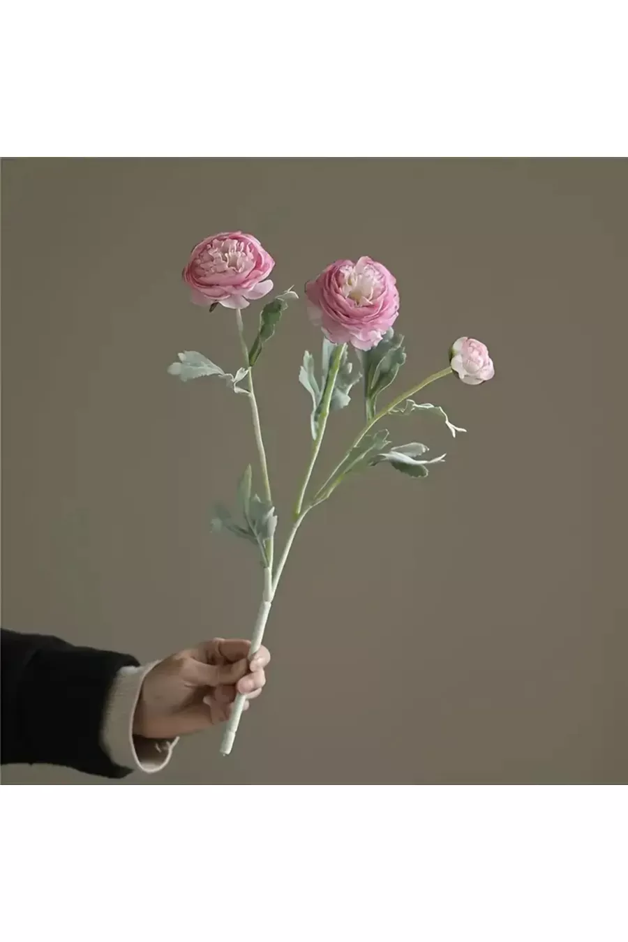 Изкуствени цветя 3 бр. Пион Ранункулус клон см Розов