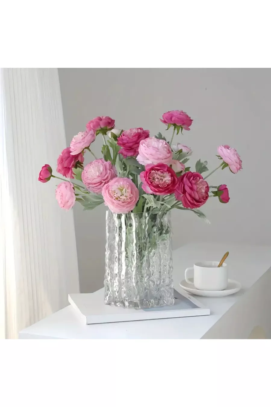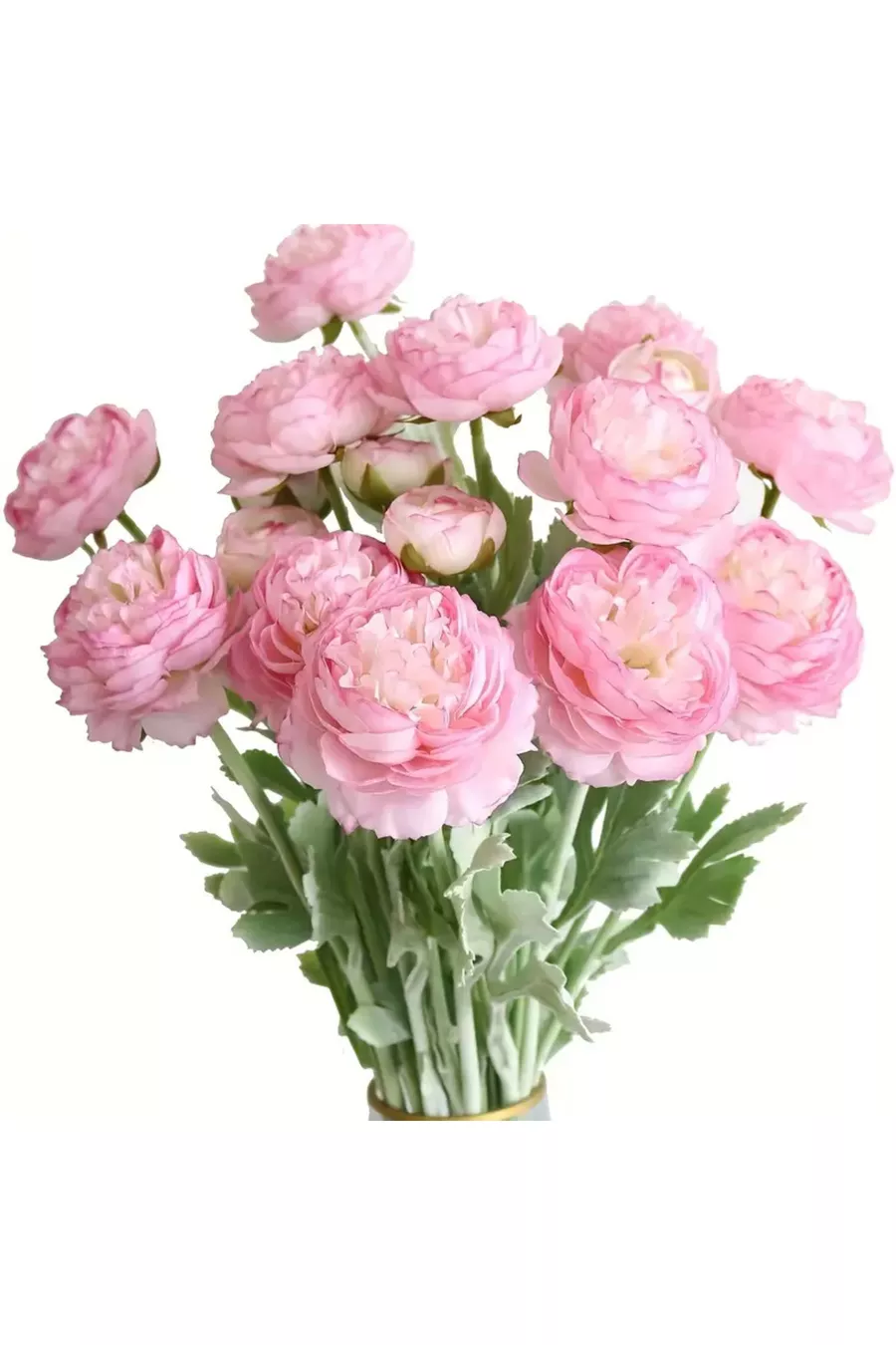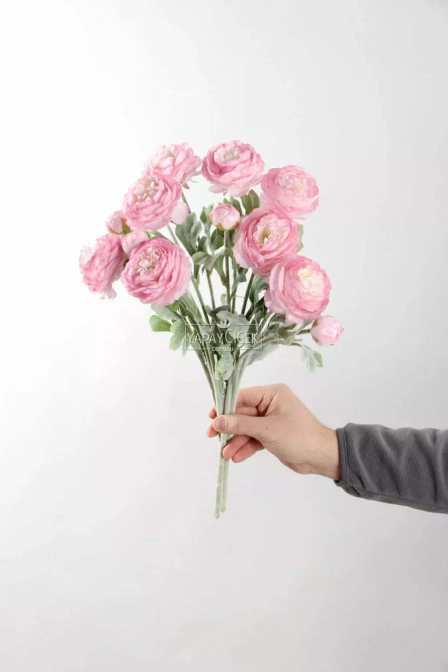 Изкуствени цветя 3 бр. Пион Ранункулус клон см Розов