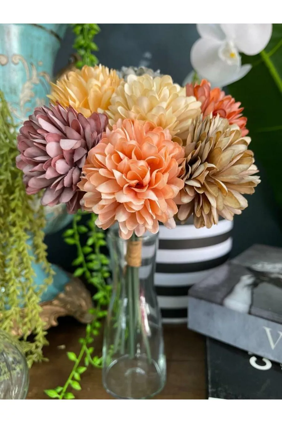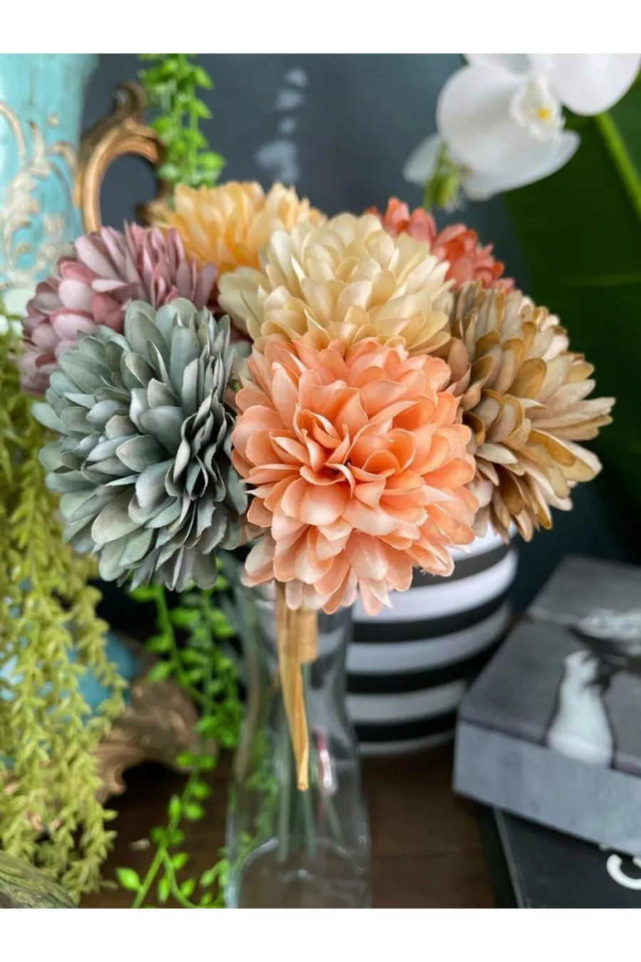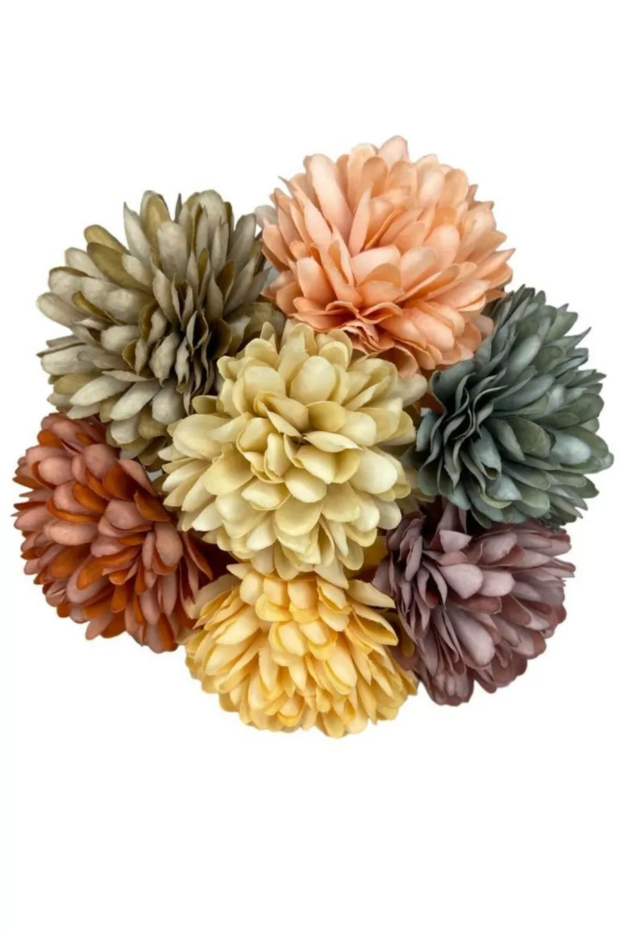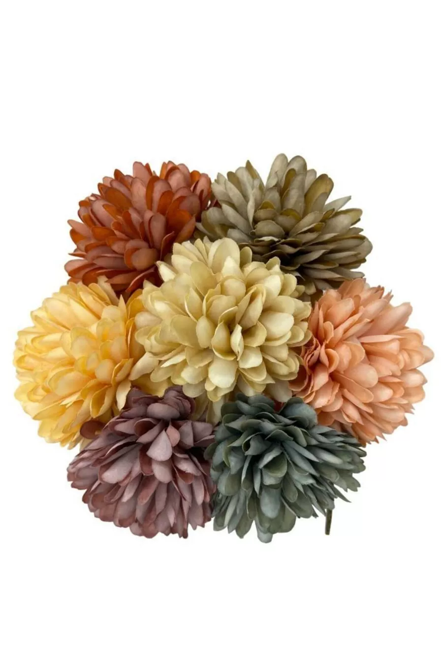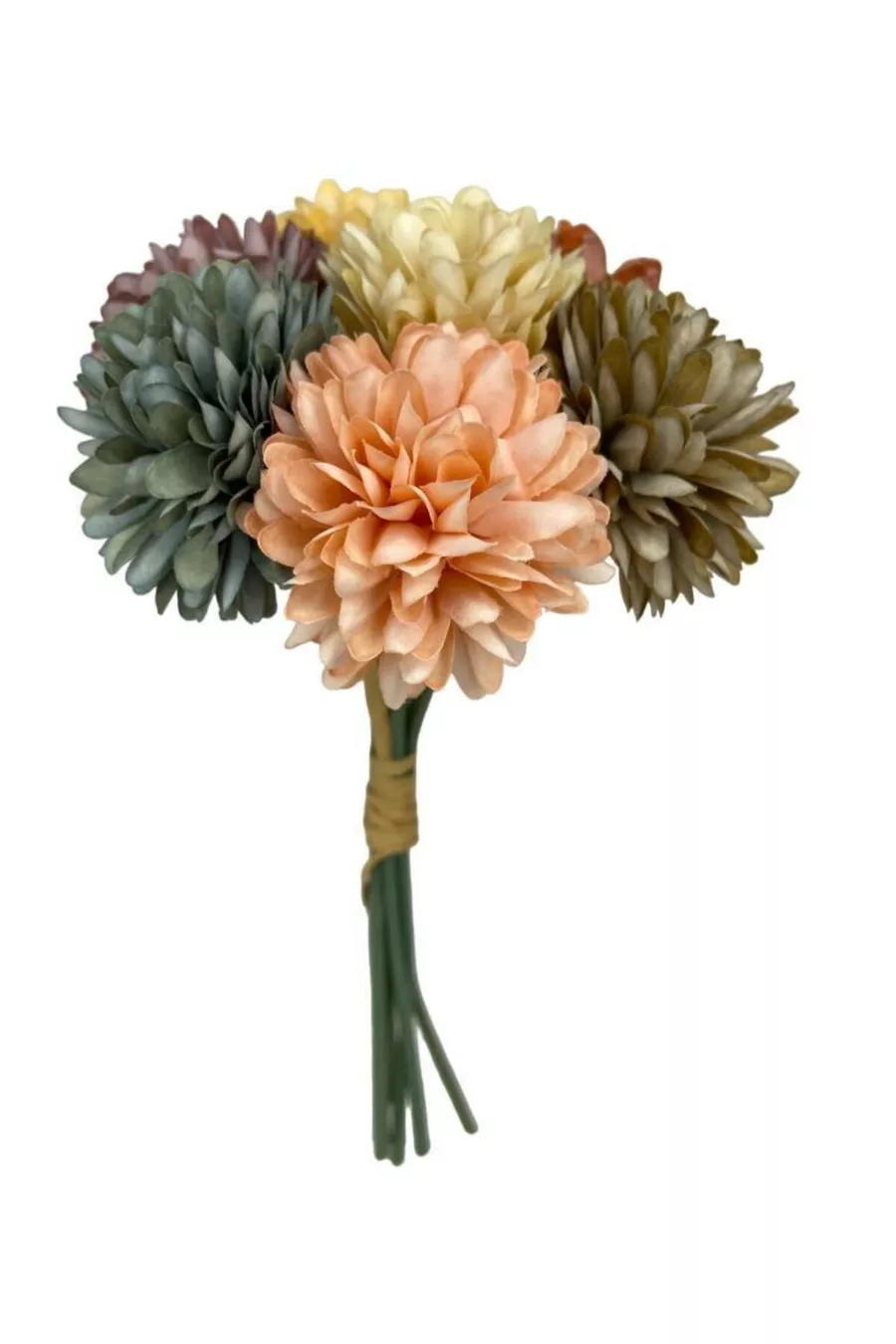 Изкуствени цветя Хризантеми Снежна топка Смесени пастелни цветове 7 отделни клонки в букет