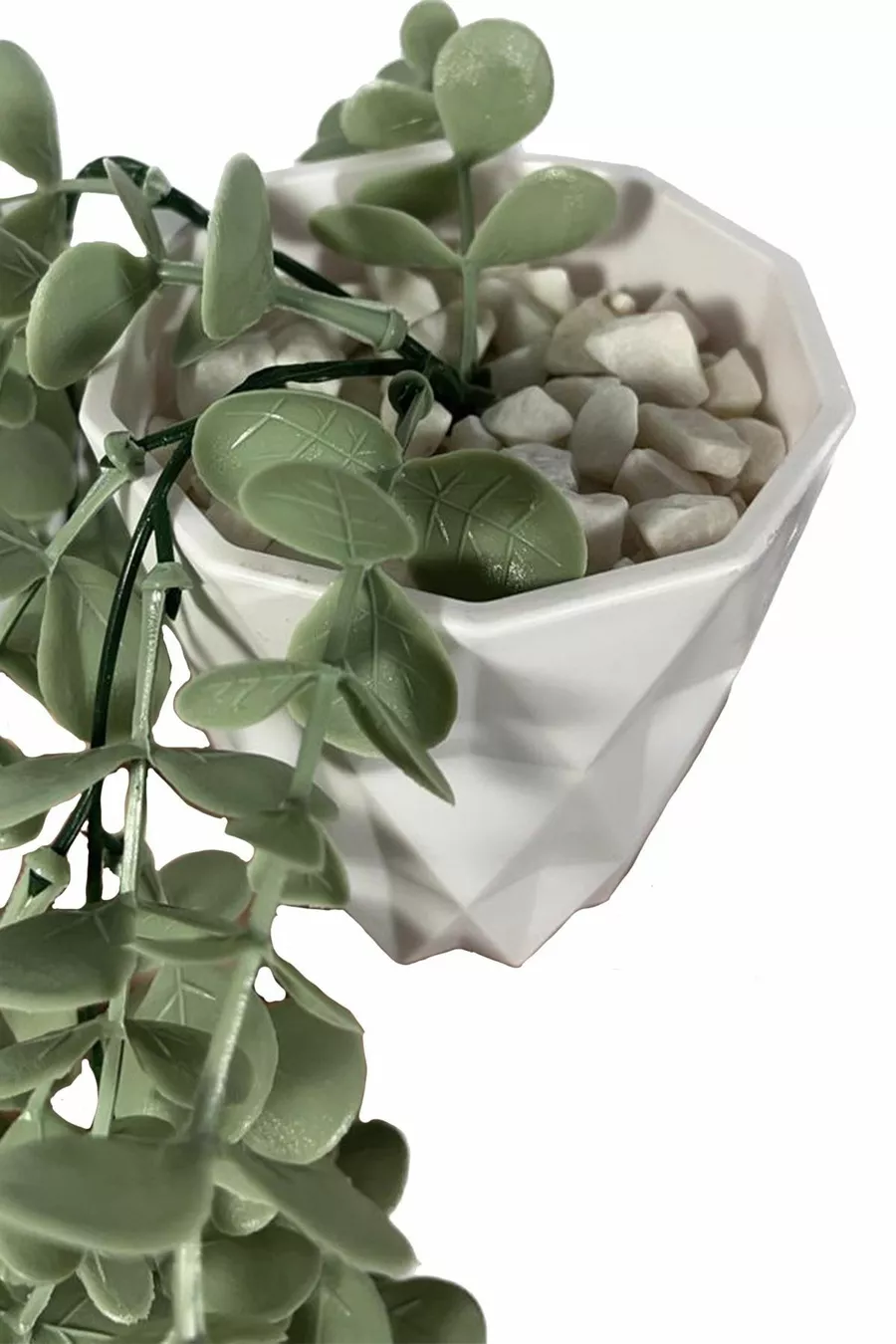 Изкуствено цвете Moblen Mika с диамант, бяло в саксия, пастелно зелено евкалиптово окачване