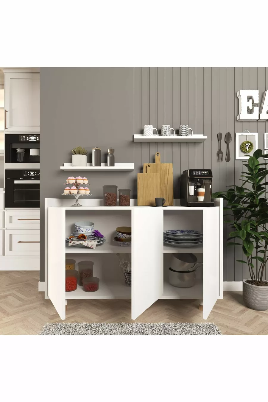 Кафе ъгъл с рафтове Bono, многофункционален шкаф, конзола, бял