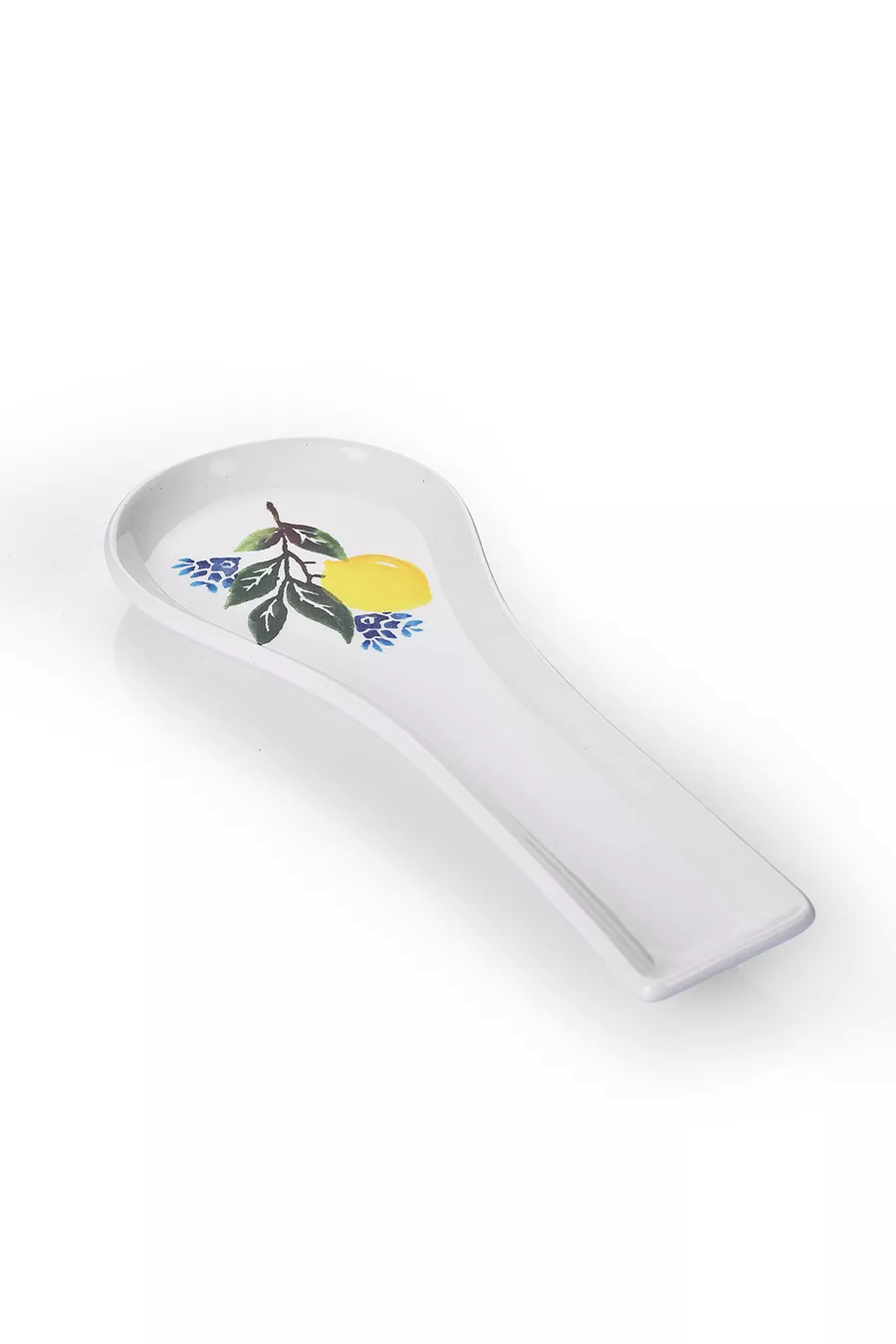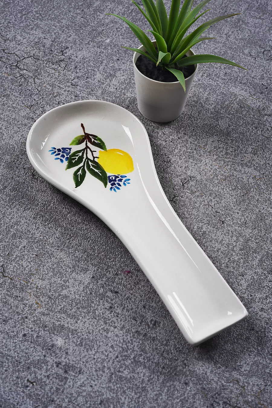 Керамичен поставка за лъжици с лимонов десен за плота, подложка за черпак и лъжица
