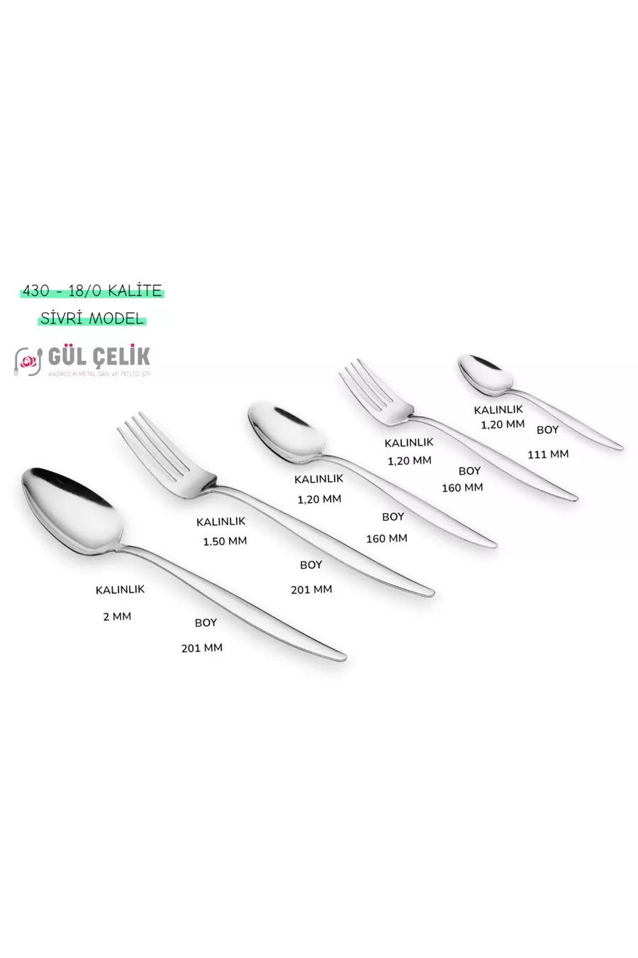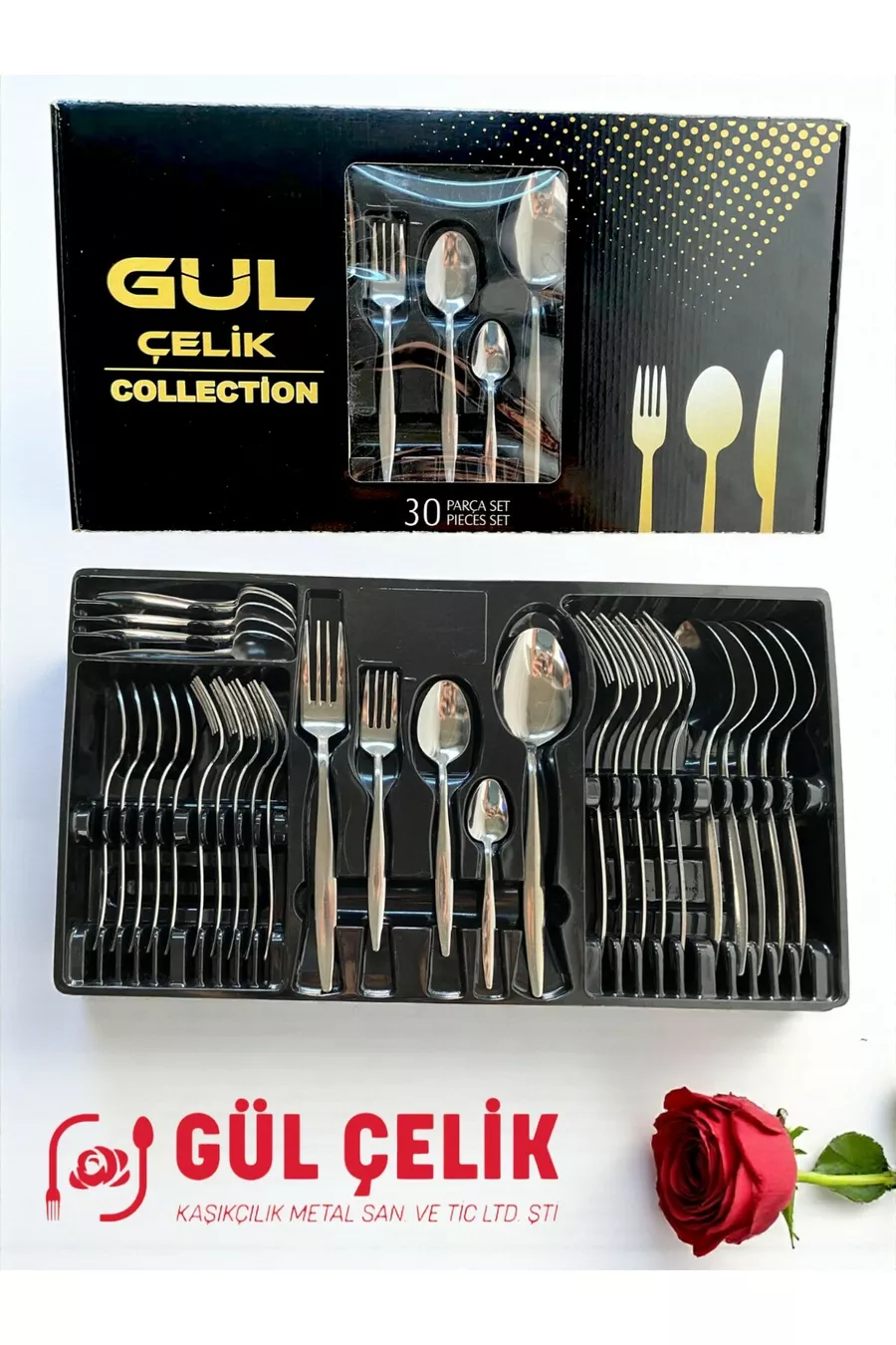 Материал: Неръждаема стомана Брой части: 30 Цвят: Метален Брой хора: За 6 души Тип продукт: Комплект вилици и лъжици Произход: Турция Гаранционен срок: 10 години Инструкции за поддръжка (Контакт с храна): Подходящо за миене в съдомиялна.