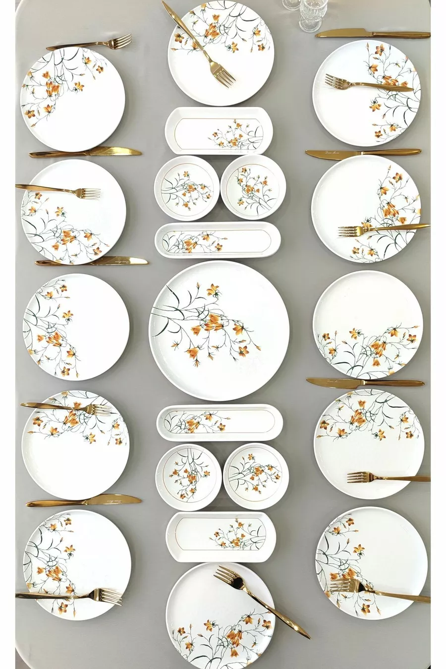 Брой хора: 12 човека Материал: Керамика Цвят: Бял Брой части: 21 Характеристика: Подходящо за микровълнова Тема / Стил: Цветя Форма: Кръгла Произход: TR