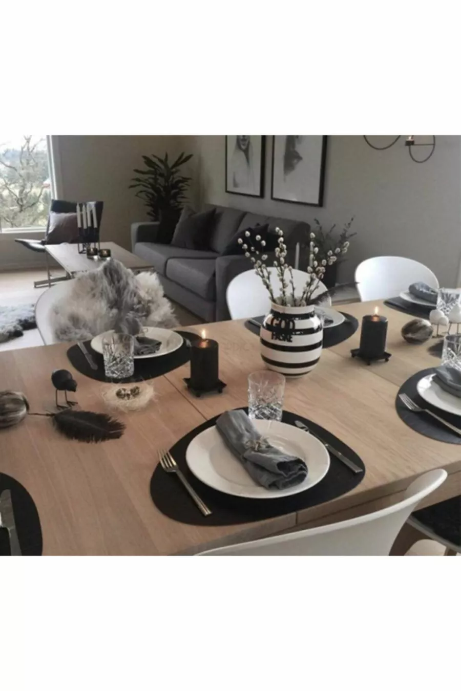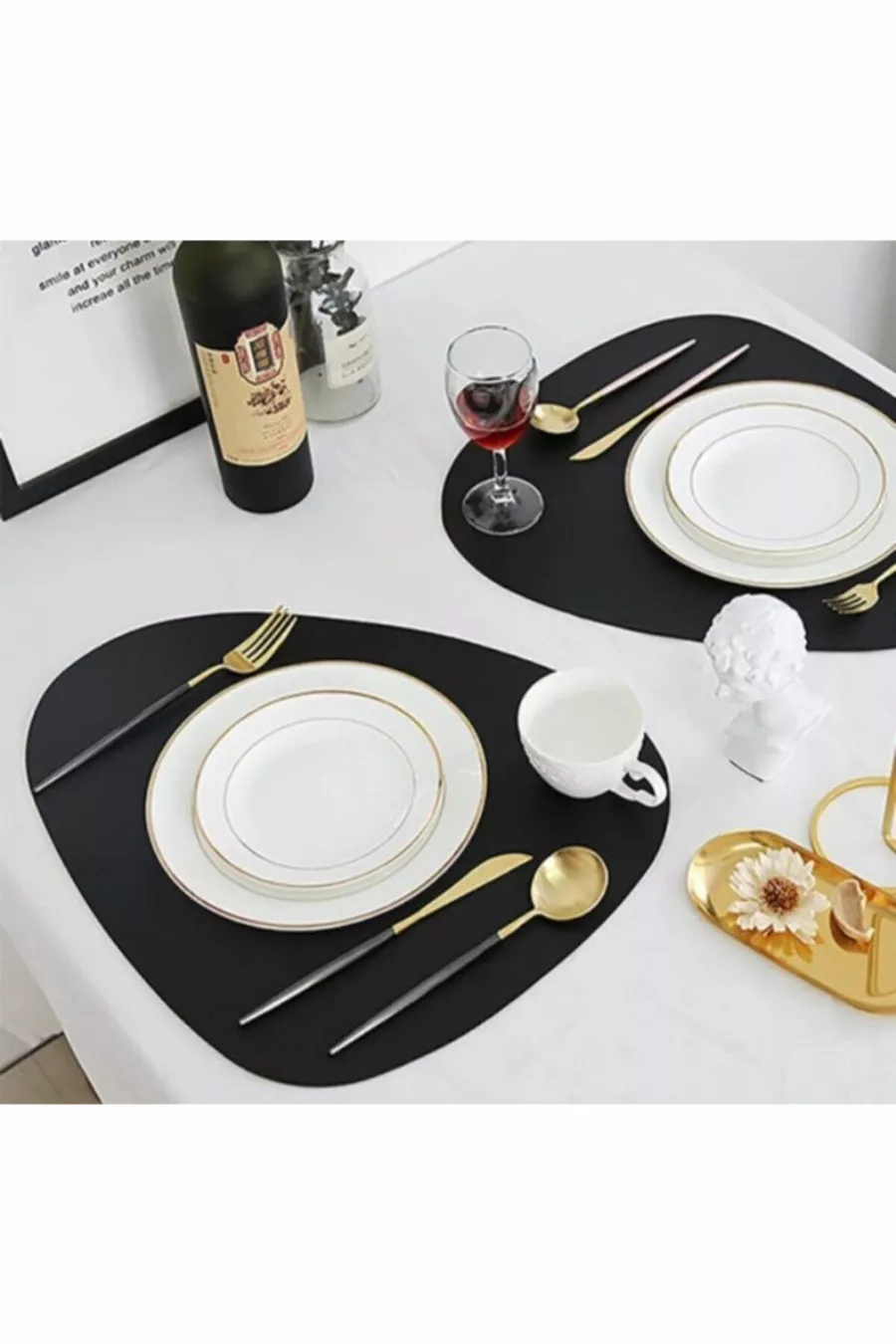 Комплект за 6 души, части, асиметрични черни американски подложки за маса