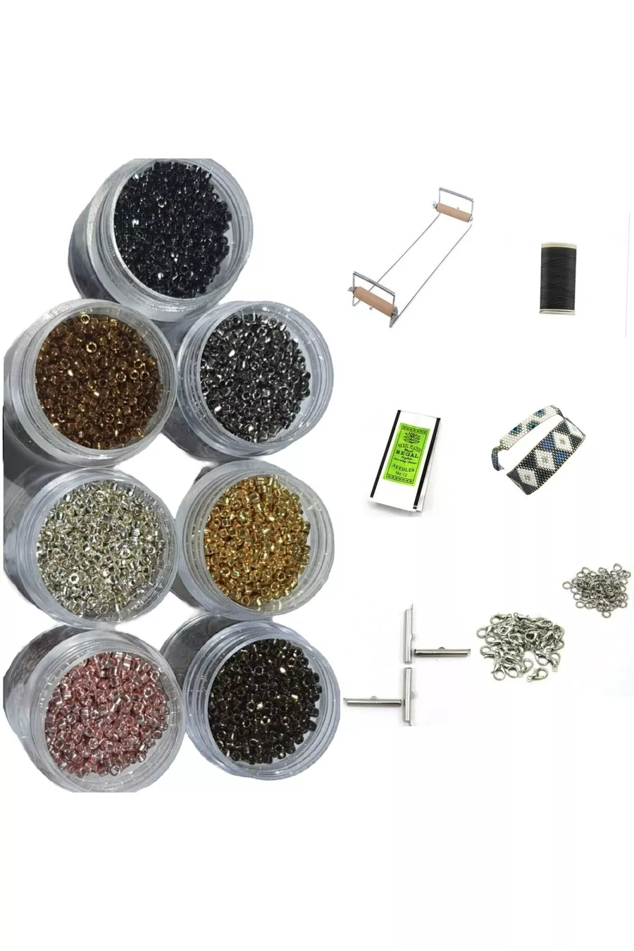Комплект мъниста Miyuki Delica с специално покритие - с рингов и клипс за тъкачен стан