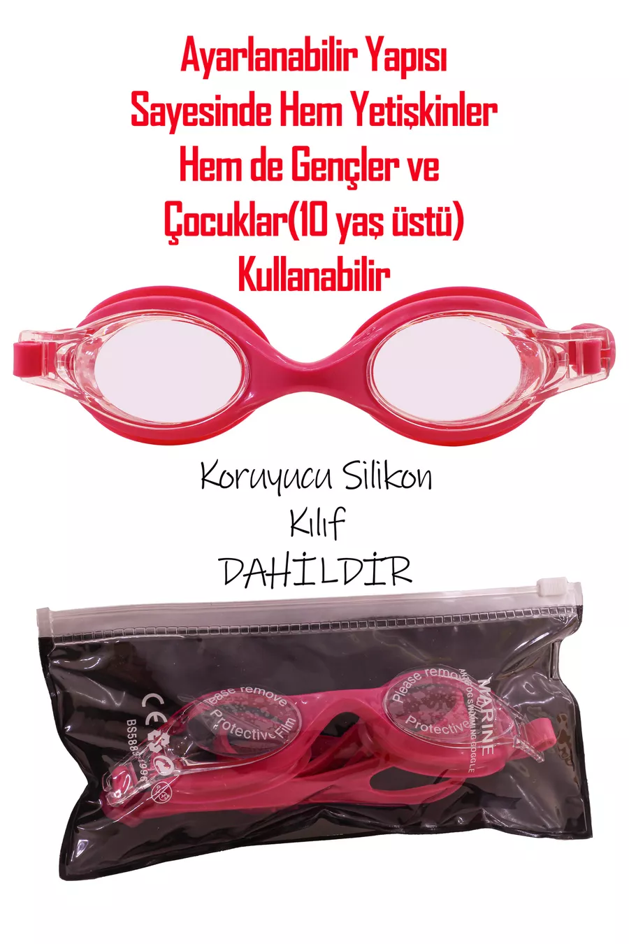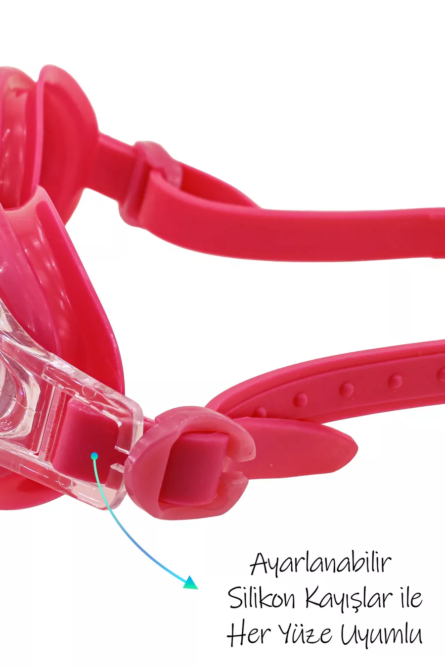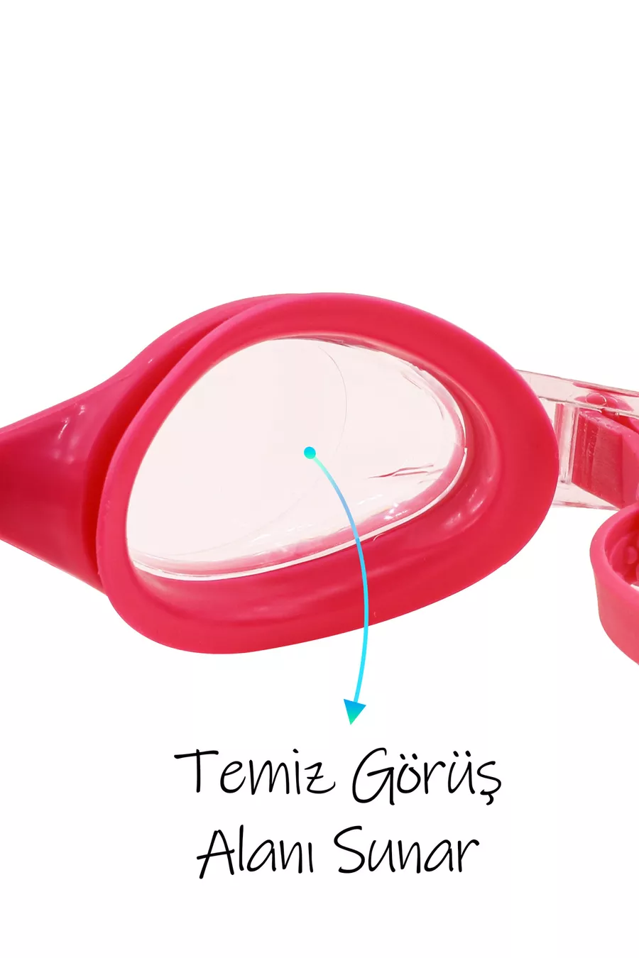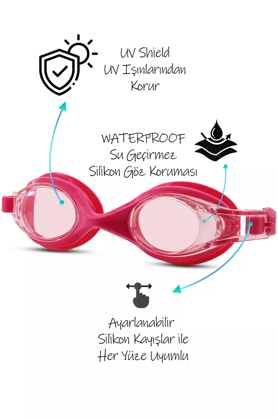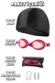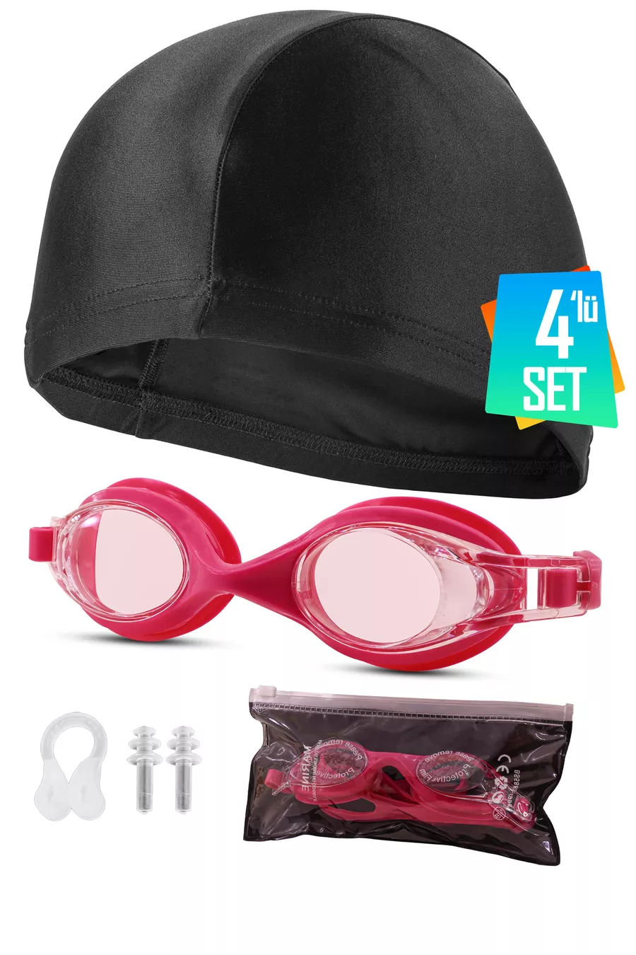 Комплект от 4 части плувни очила с калъф, тапи за уши и нос, текстилен шапка за плуване, очила за басейн и море, розови
