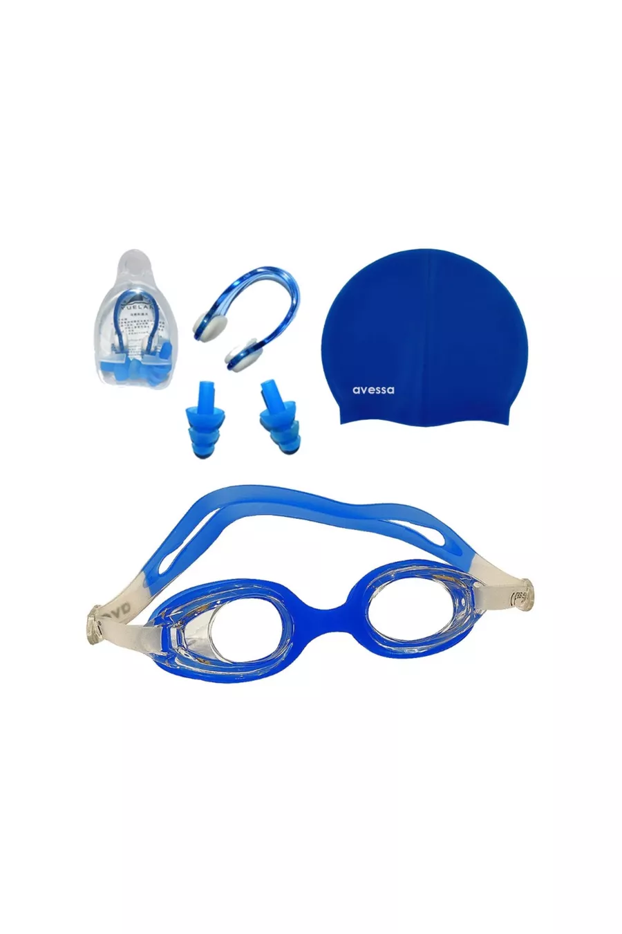 Комплект от 3 детски очила за плуване - плувни очила, очила за басейн, шапка, тапи за уши и нос
