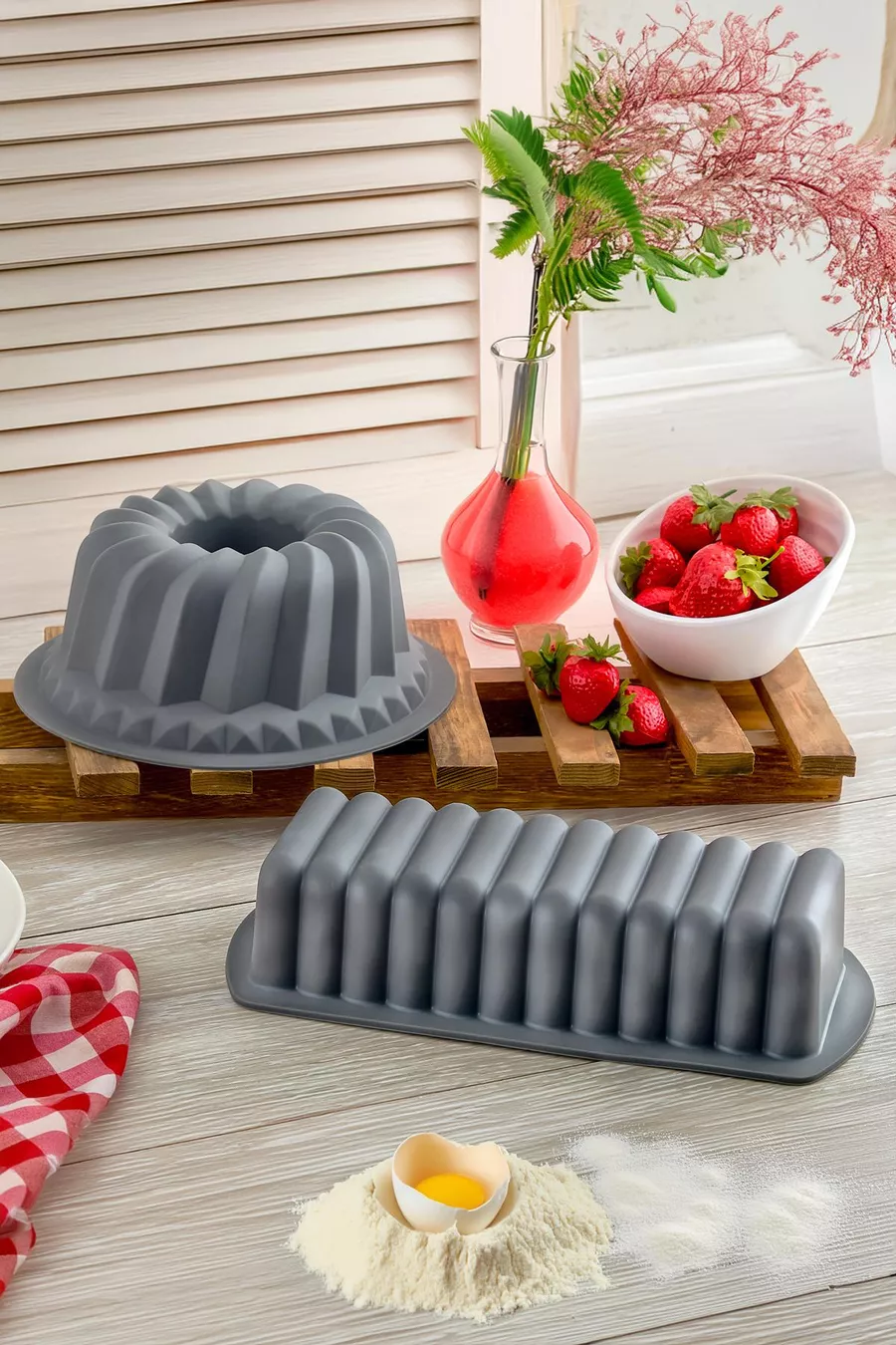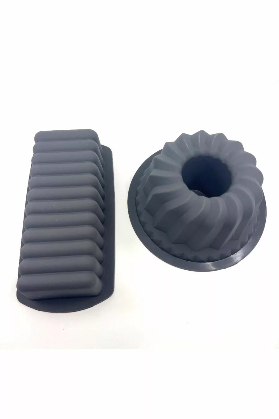 Комплект от 2 части антрацитени силиконови форми за кекс, правоъгълна форма за кекс - овална форма за кекс