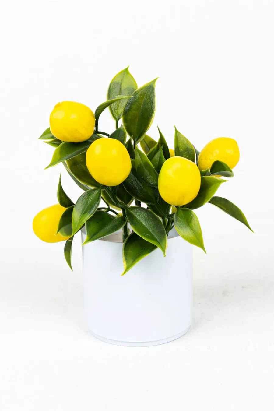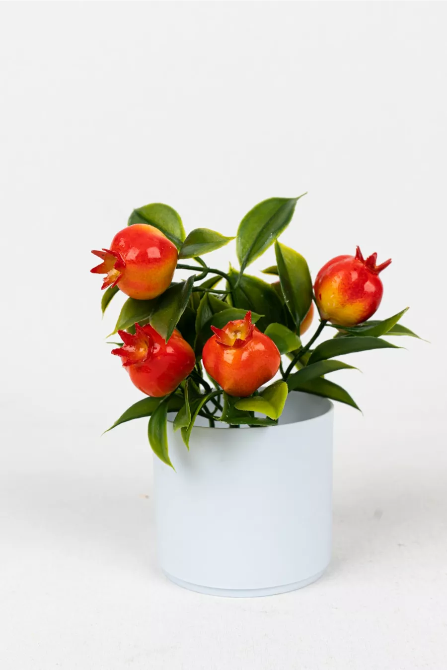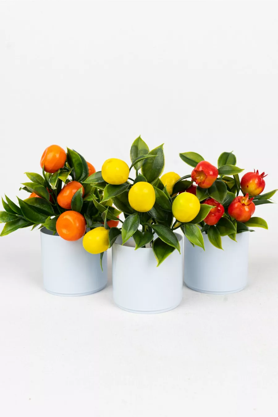 Комплект от 3 мини изкуствени цветя и плодове в бели саксии
