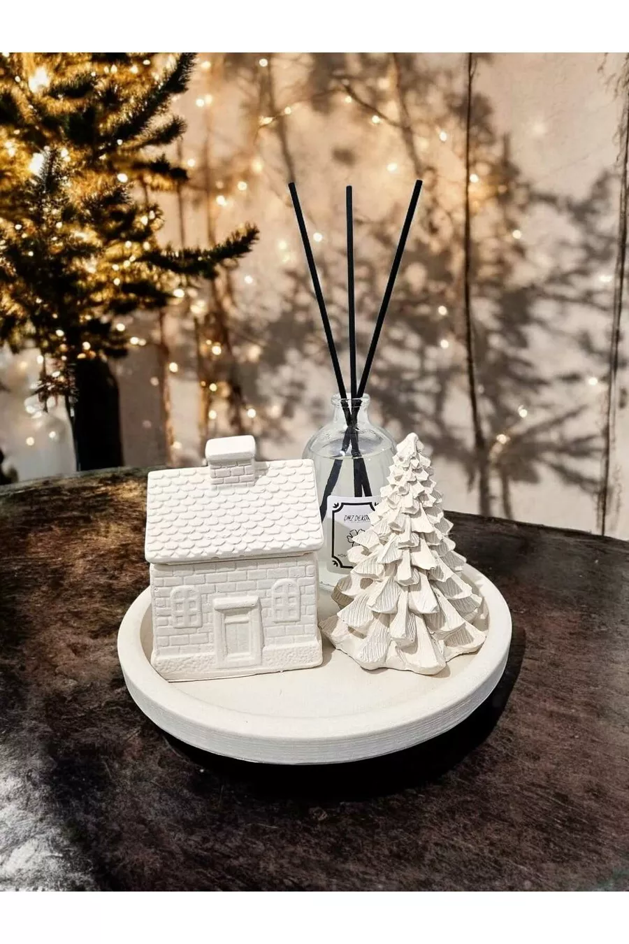 Комплект от 4 бр. Фигурка на бор + Декоративна къща + Свеж аромат за стая + Кръгла тава