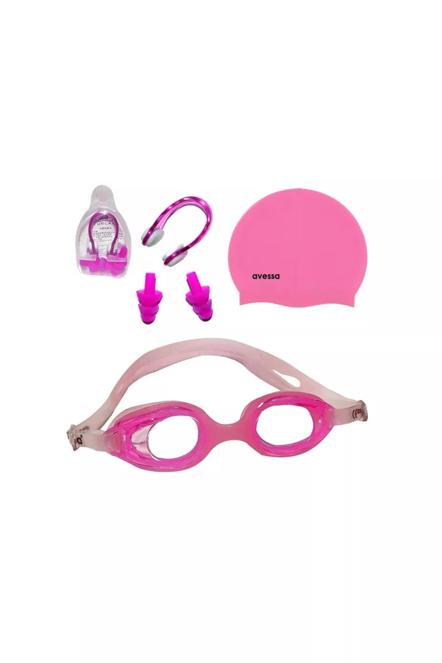 Комплект от 3 детски очила за плуване - плувни очила, очила за басейн, шапка, тапи за уши и нос