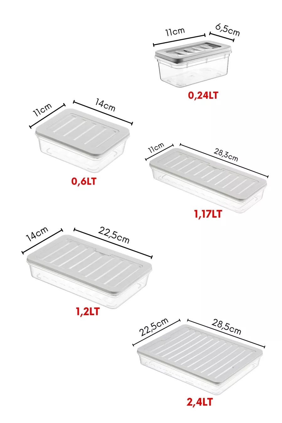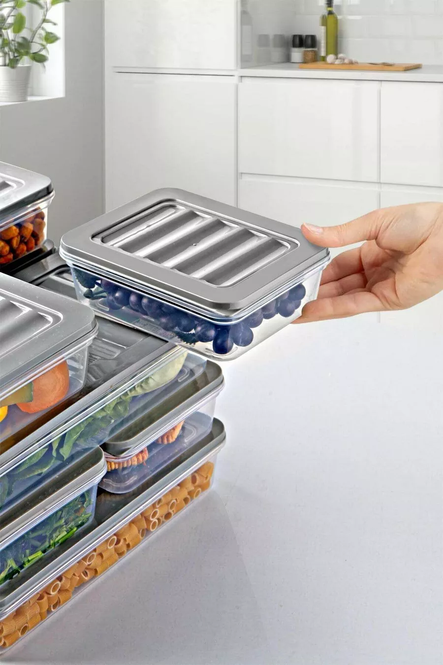 Материал: Пластмаса Брой части: 19-25 Цвят: Сив Обем: 2,4 л Инструкции за поддръжка (във връзка с храна): Следвайте специфичните инструкции за поддръжка на продукта, за да запазите срока на годност на продукта.