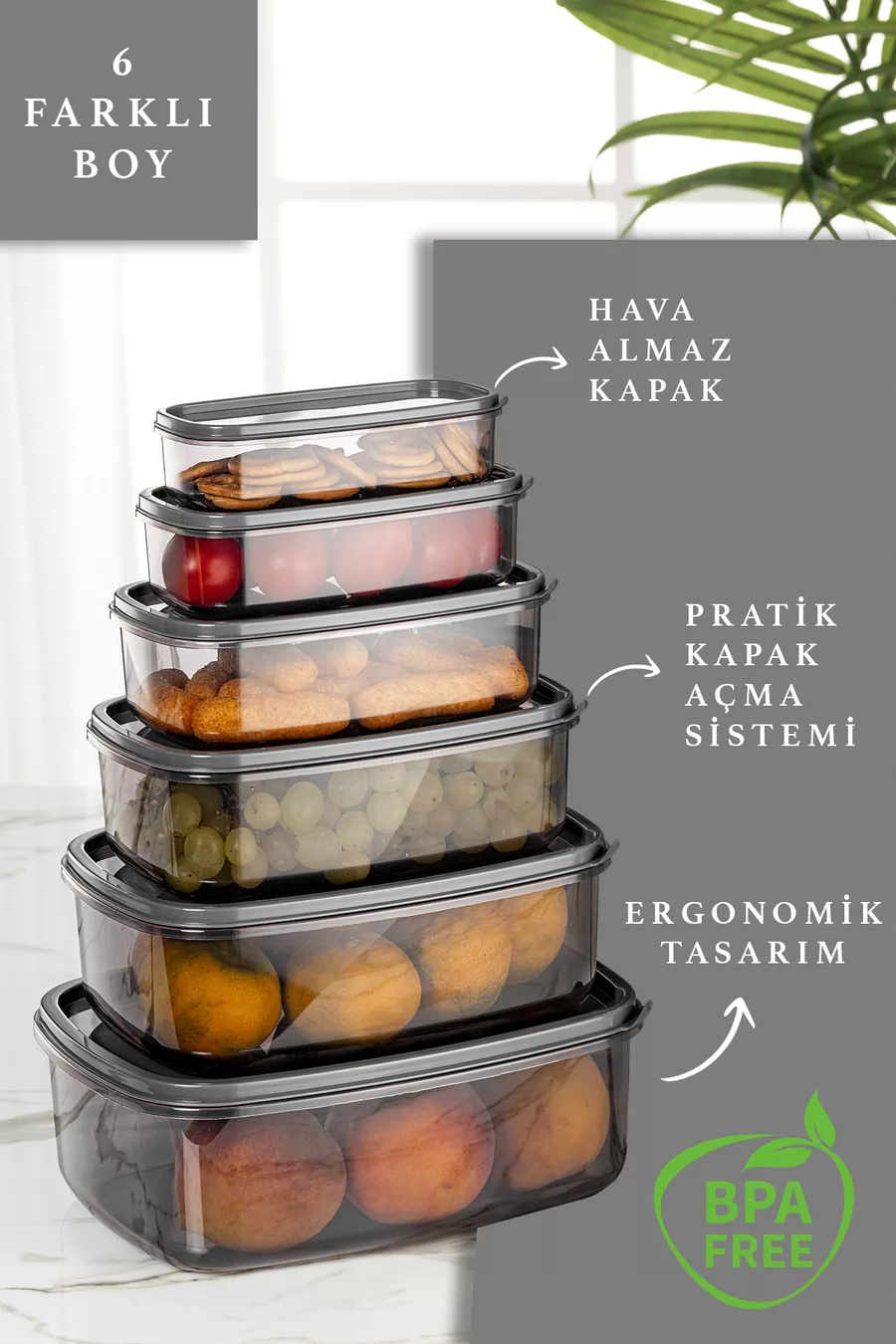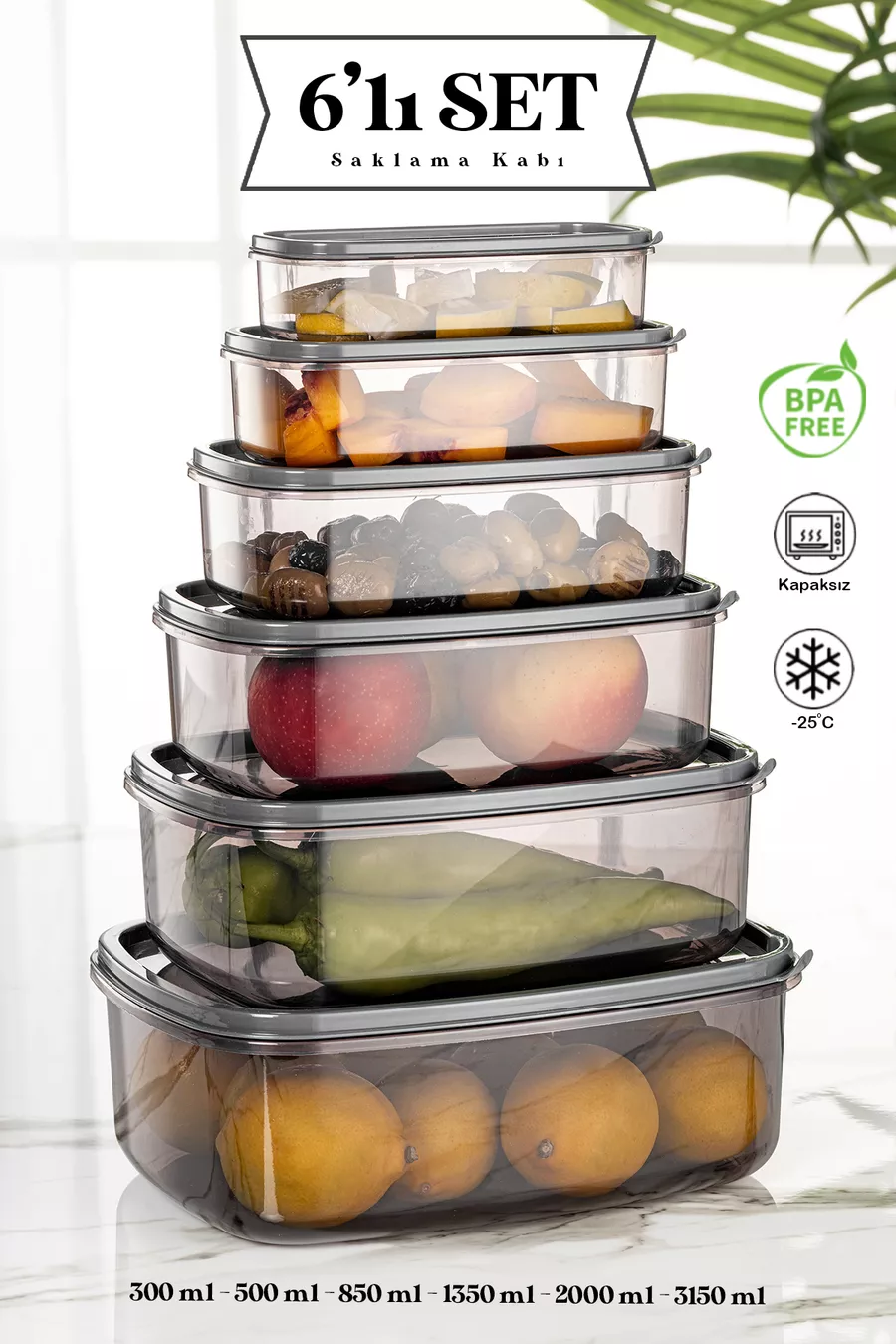 Материал: Пластмаса Брой части: 6 Цвят: Сив Обем: 300 мл Произход: Турция