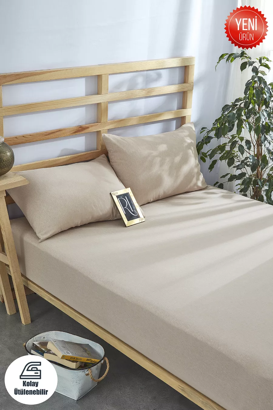Комплект чаршафи с ластик Капучино Едноцветен Памучен с калъфки за възглавници Едноличен-Двоен-Голям