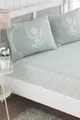 Съдържание на пакета: комплект от 3 броя Материал: Памук Полиестер Тип чаршаф: С ластик Цвят: Зелен Размер: Двойно легло Дизайн: Едноцветен Характеристика: Обратим Състав на материала: 65% памук, 35% полиестер Инструкции за пране: T01