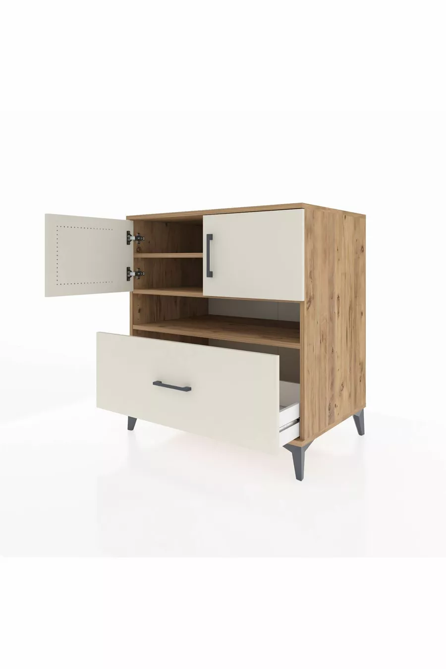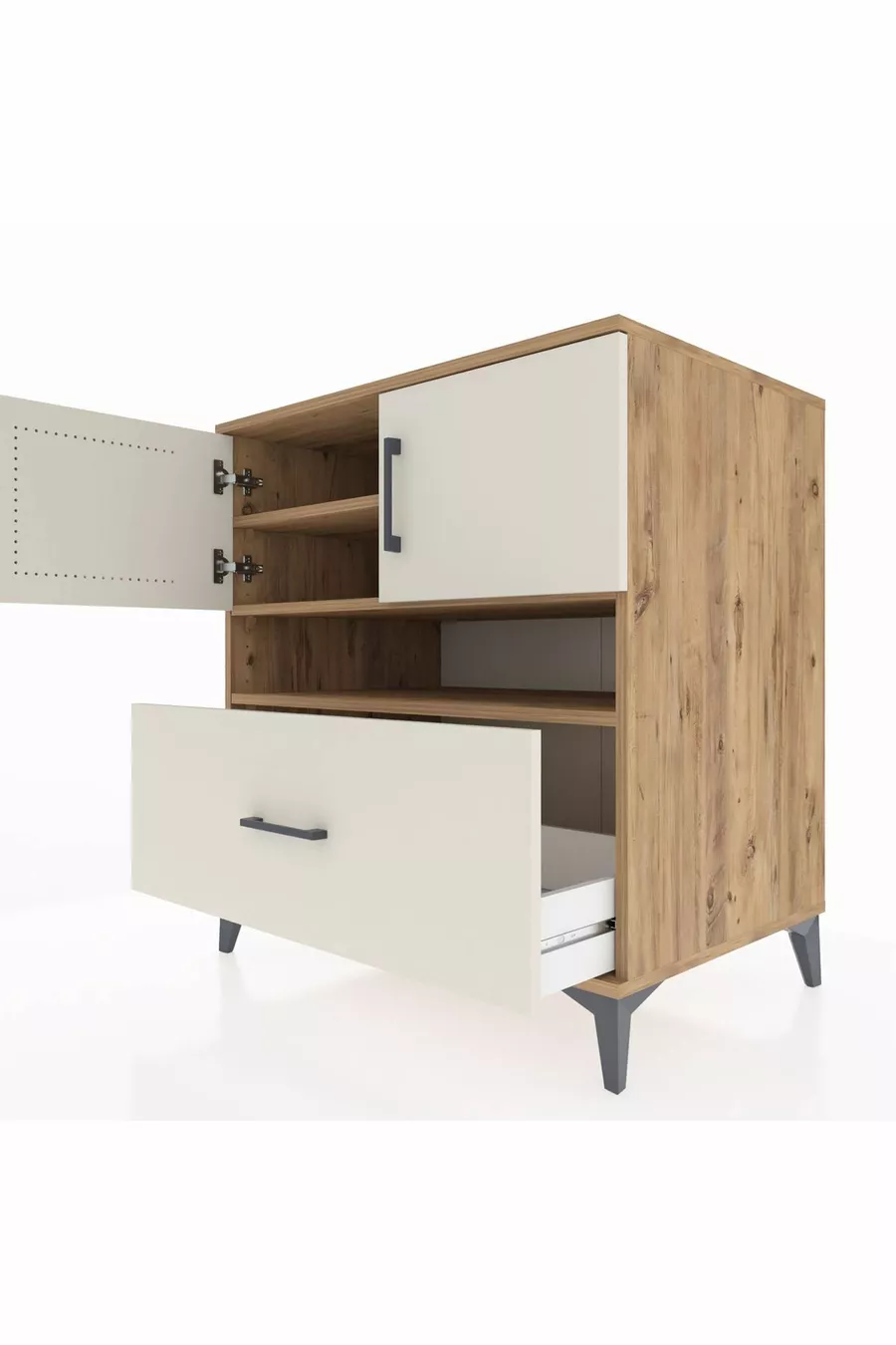 Кронос скрин с 3 рафта, 1 чекмедже и 2 врати, бор-дъб