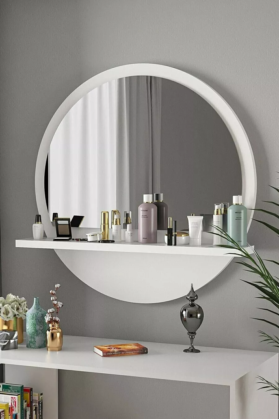Цвят: Бял Размер/Габарит: 45 x 45 Форма: Кръгла Вид: Огледало за грим Особеност: С рафт