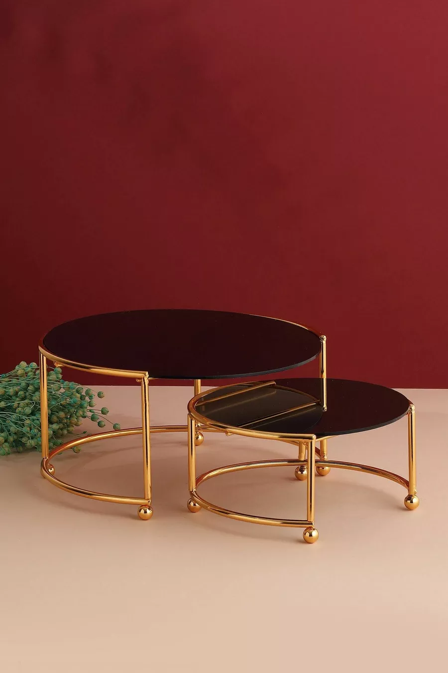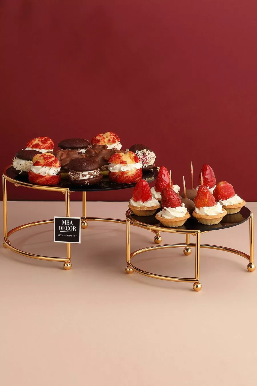 Кръгъл Двоен Златен Черен Кафяв Органайзер от MDF Дърво за Подарък, Декорация и Сервиране