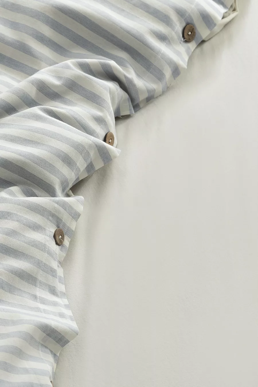 Лесен бохо комплект спално бельо за двойно легло с боядисана нишка в синьо, подходящ за пране