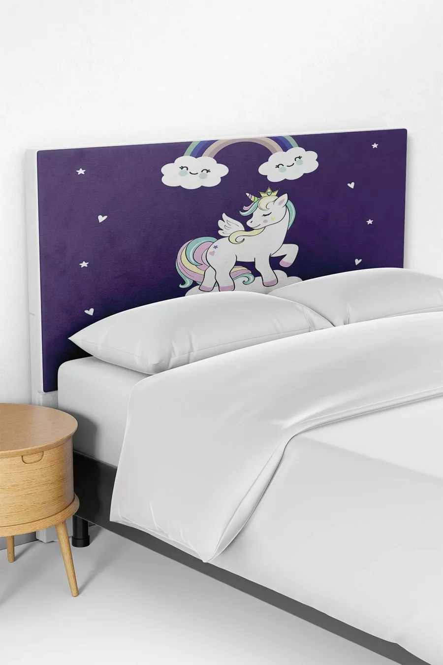 Лилав калъф за таблата на легло с дизайн на любимия еднорог за детска стая