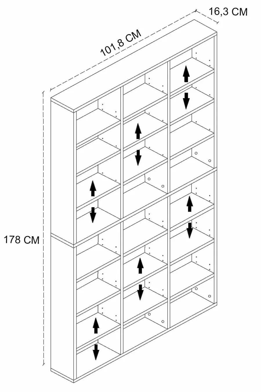 Тип: Класически Материал: ПДЧ Цвят: Кафяв Височина: 178 см Ширина: 101 см Дълбочина: 16 см Брой рафтове: 24 Материал на корпуса: ПДЧ Стил: Модерен Тема / Стил: Скандинавски Произход: TR Характеристика: С рафтове