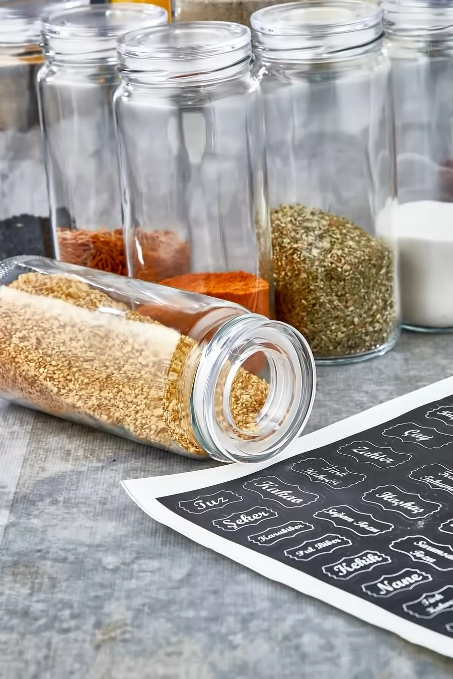 'Ли Голям стъклен буркан за съхранение Комплект за подправки Супер комплект мл (с етикет като подарък)
