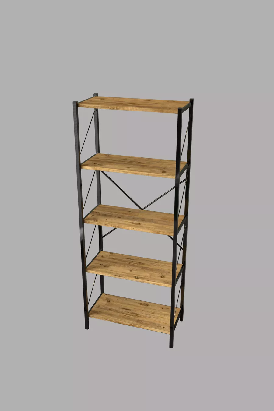 Тип: Класически Материал: Ламиниран ПДЧ Цвят: Кафяв Височина: 150 см Ширина: 60 см Дълбочина: 30 см Брой рафтове: 5 Материал на корпуса: Метал Стил: Модерен Тема / Стил: Модерен Произход: TR Характеристика: С рафтове