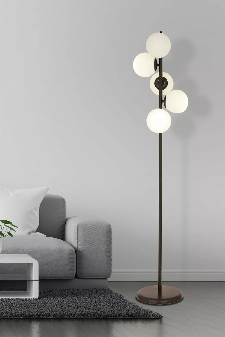 Модел: Едно краче Цвят: Черен Материал: Стъкло Брой на крушки: 5 Тип на фасунга: E27 Височина от пода: 151-200 см Характеристика: Въздух