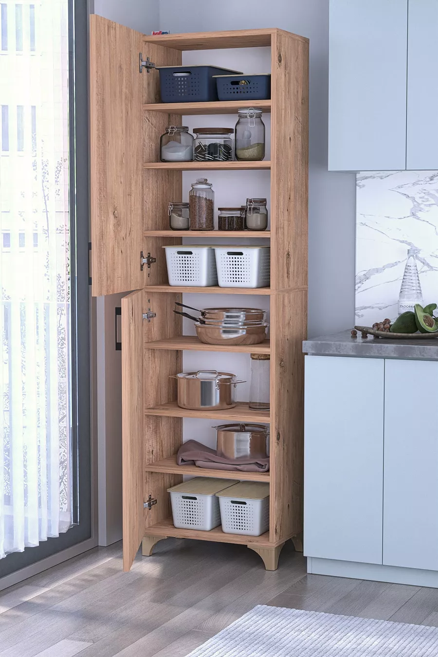 Материал: ПДЧ Брой чекмеджета: 1 Цвят: Кафяв Модел: Вертикален Височина: 174 см Ширина: 49 см Дълбочина: 32 см Гаранция: 1 година Стил: Модерен Тема / стил: Модерен Произход: TR Характеристика: С врата