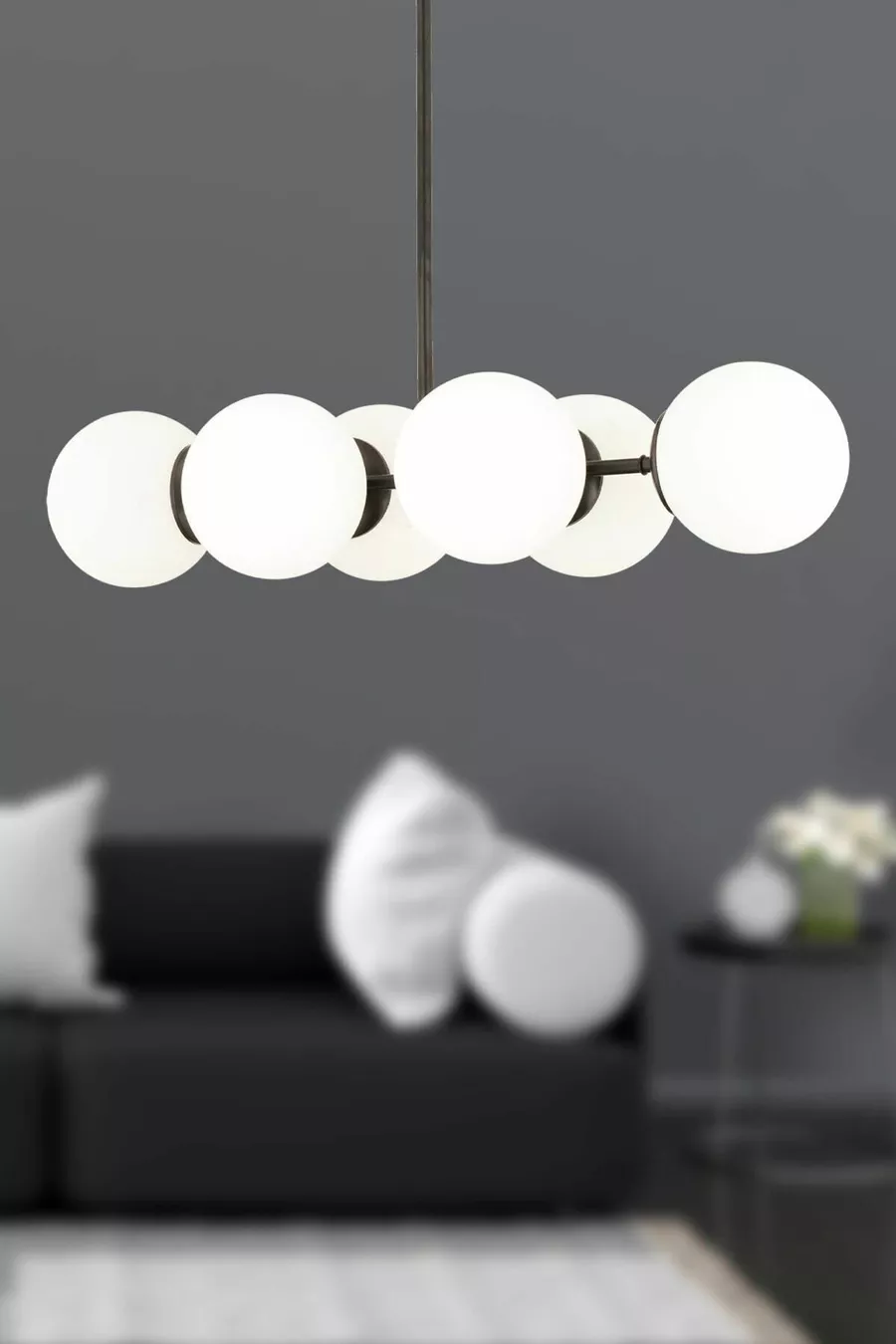 Материал: Стъкло Модел: Модерен Тип фасунга: E27 Брой крушки: 6 Цвят: Черен Размери: 85 x 70 Височина: 61 - 70 см Приложение: Хол / Всекидневна Произход: TR Характеристика: Дълго