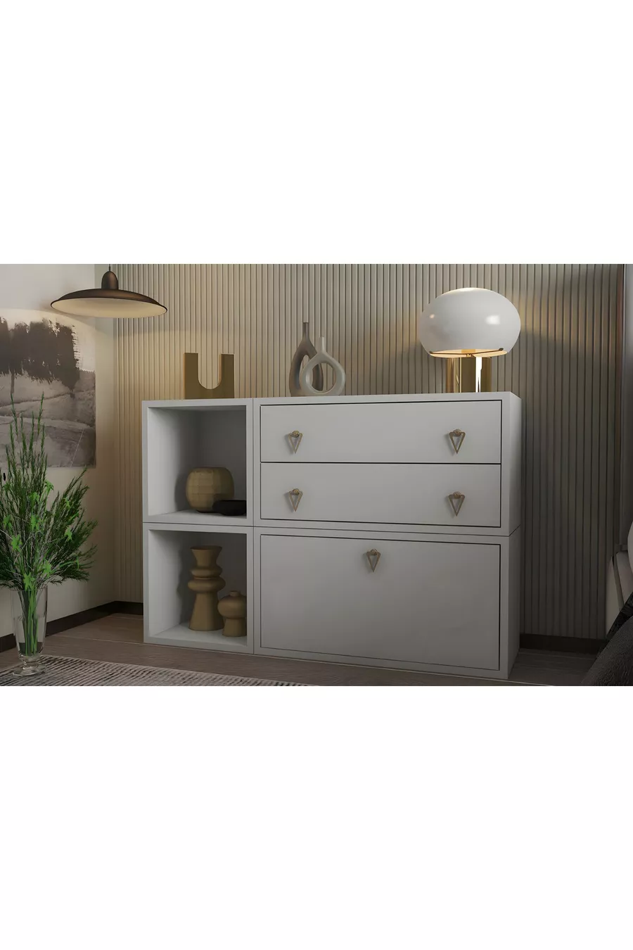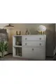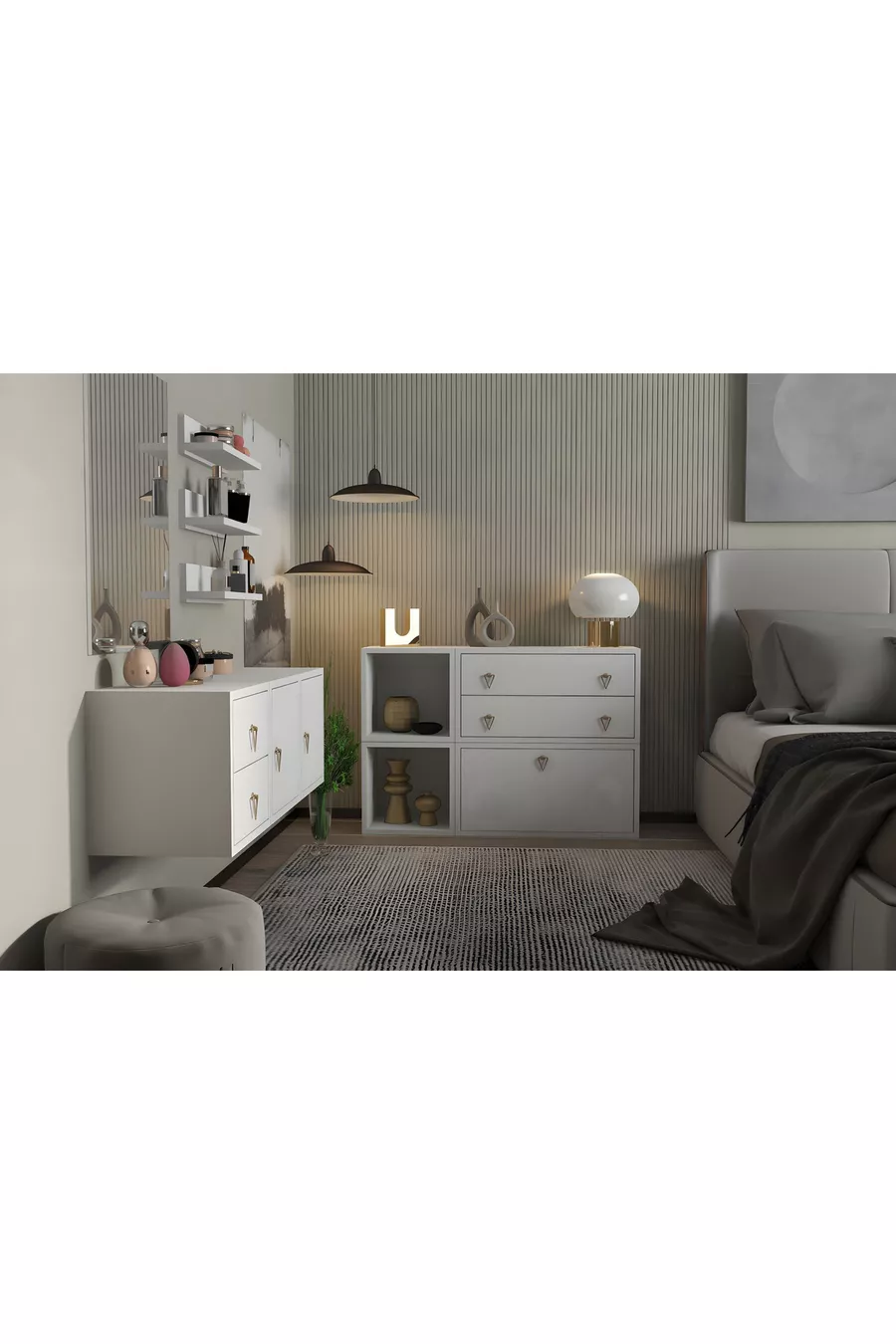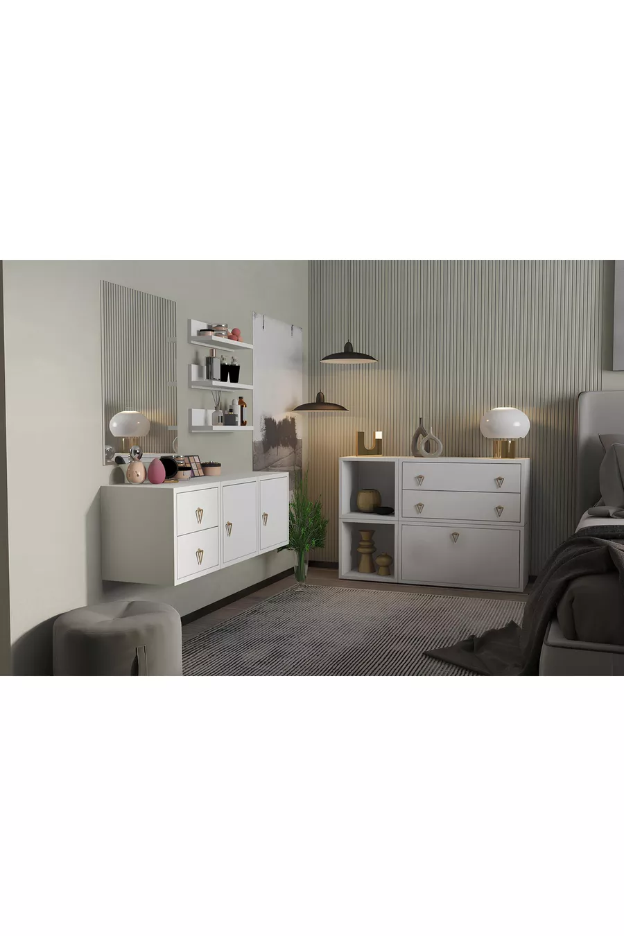 Съдържание на комплекта: Гардероб + 2 нощни шкафчета + скрин + табла за легло