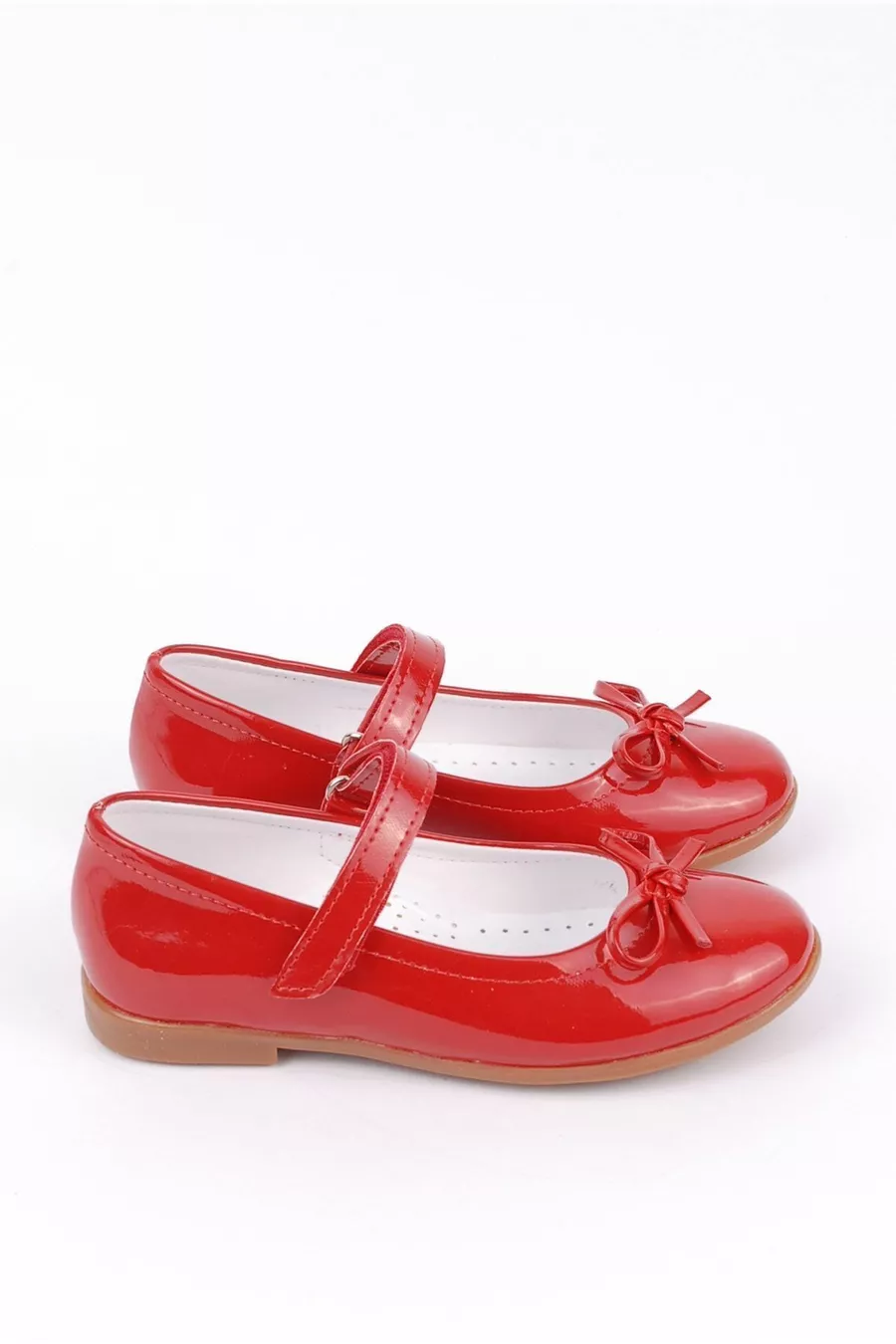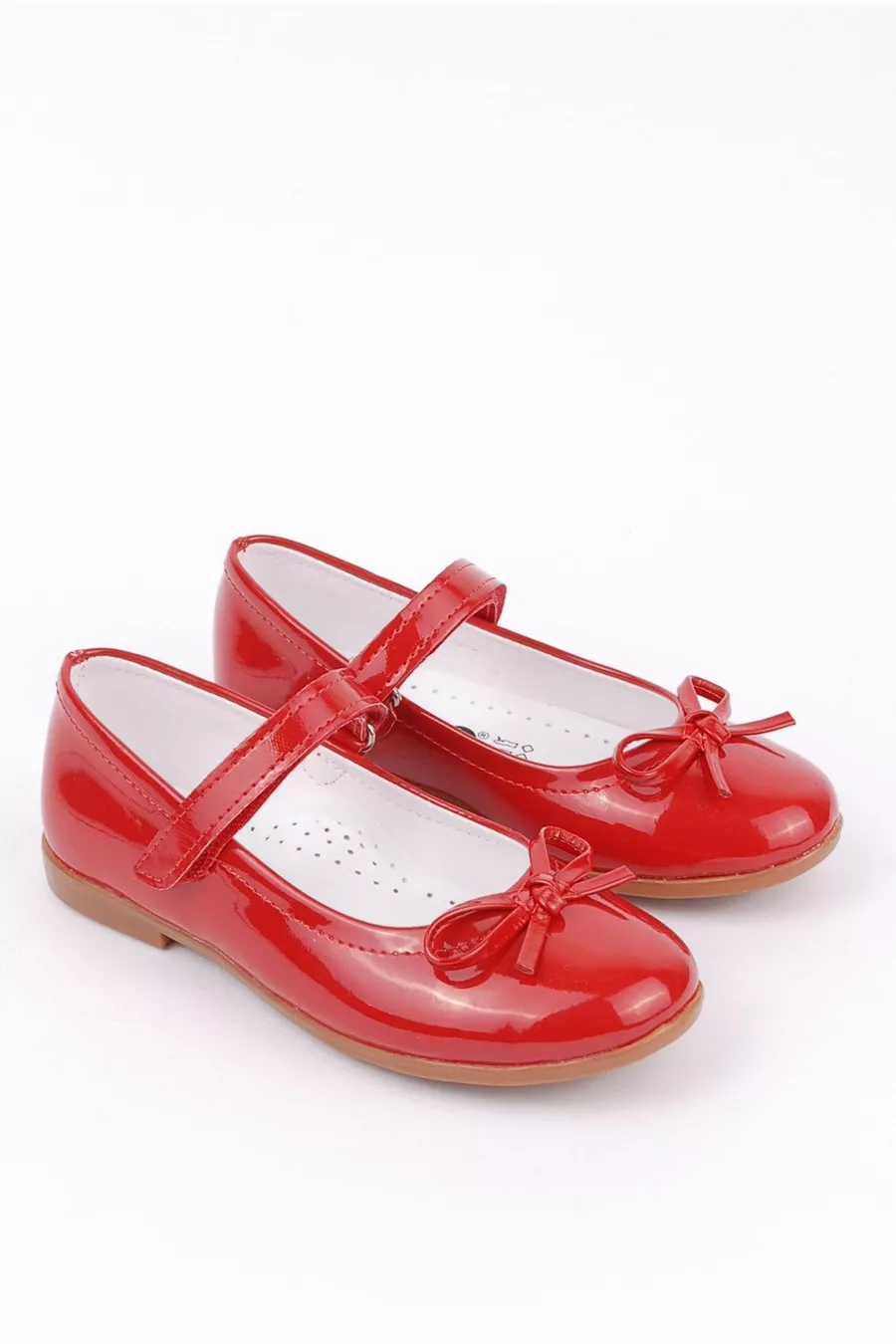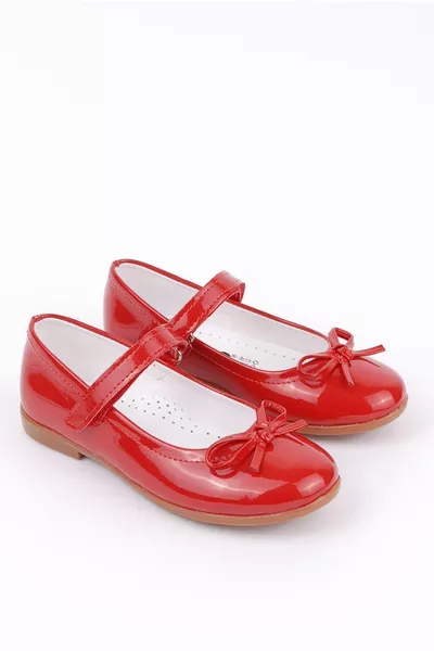 Момичета с панделка Ежедневна и вечерна рокля Балетни балетки Червена лачена кожа