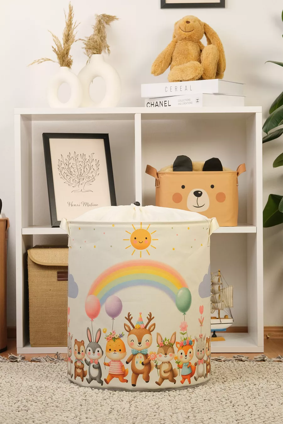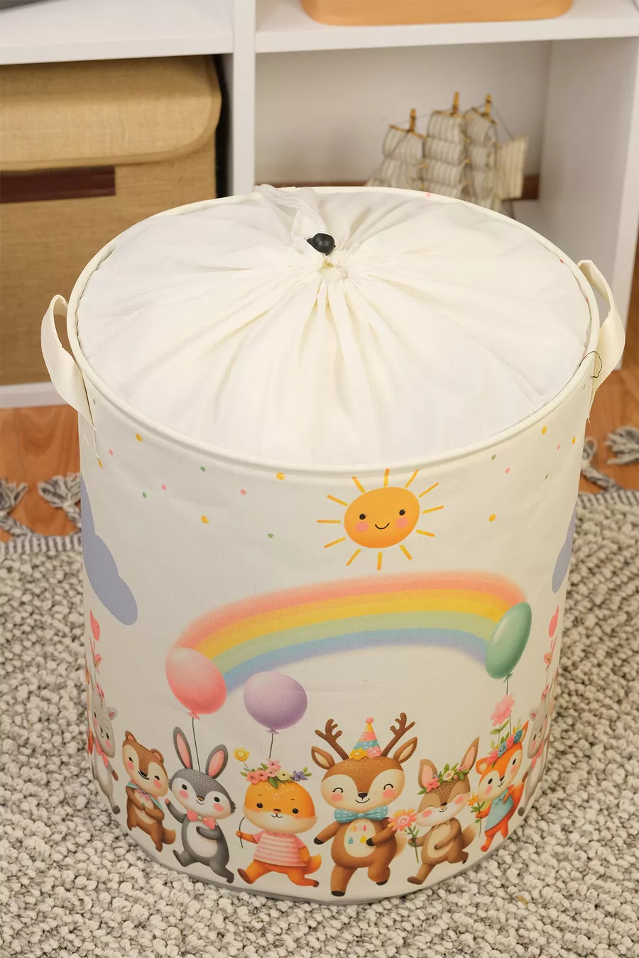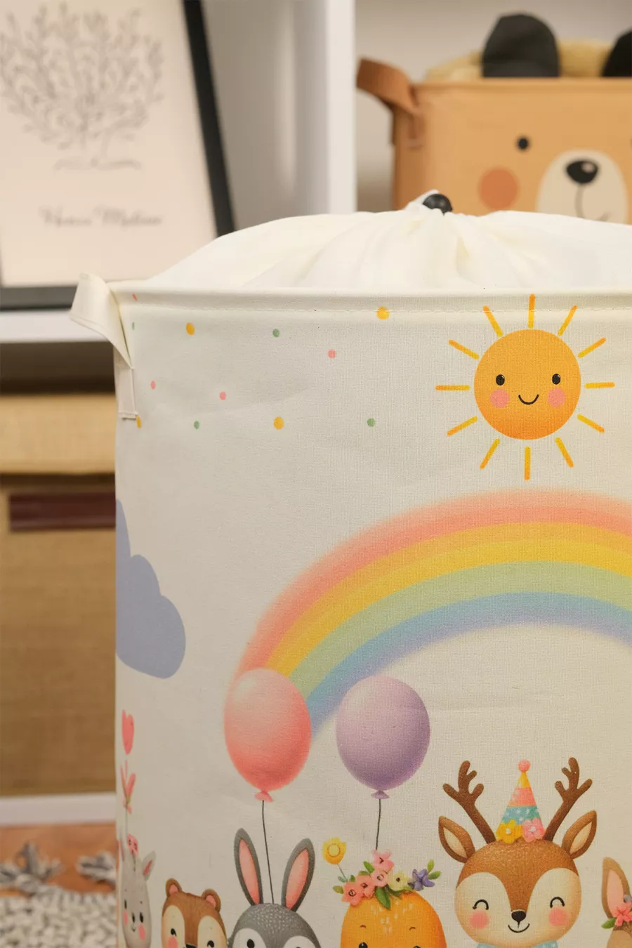 Мрежеста многофункционална кошница за играчки с щампа на сладко танцуващо животно, сгъваема органайзер