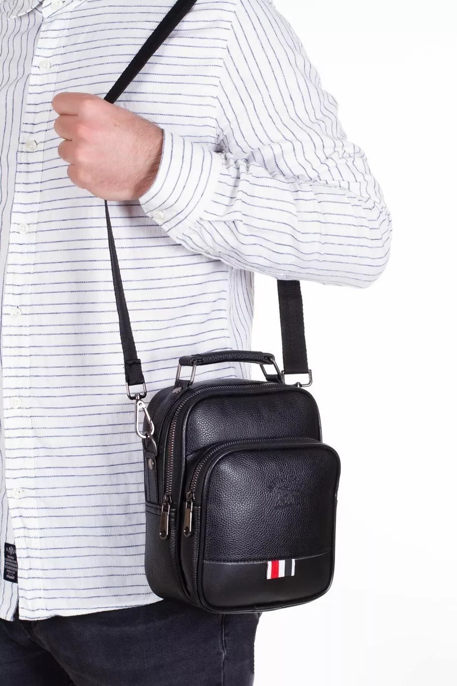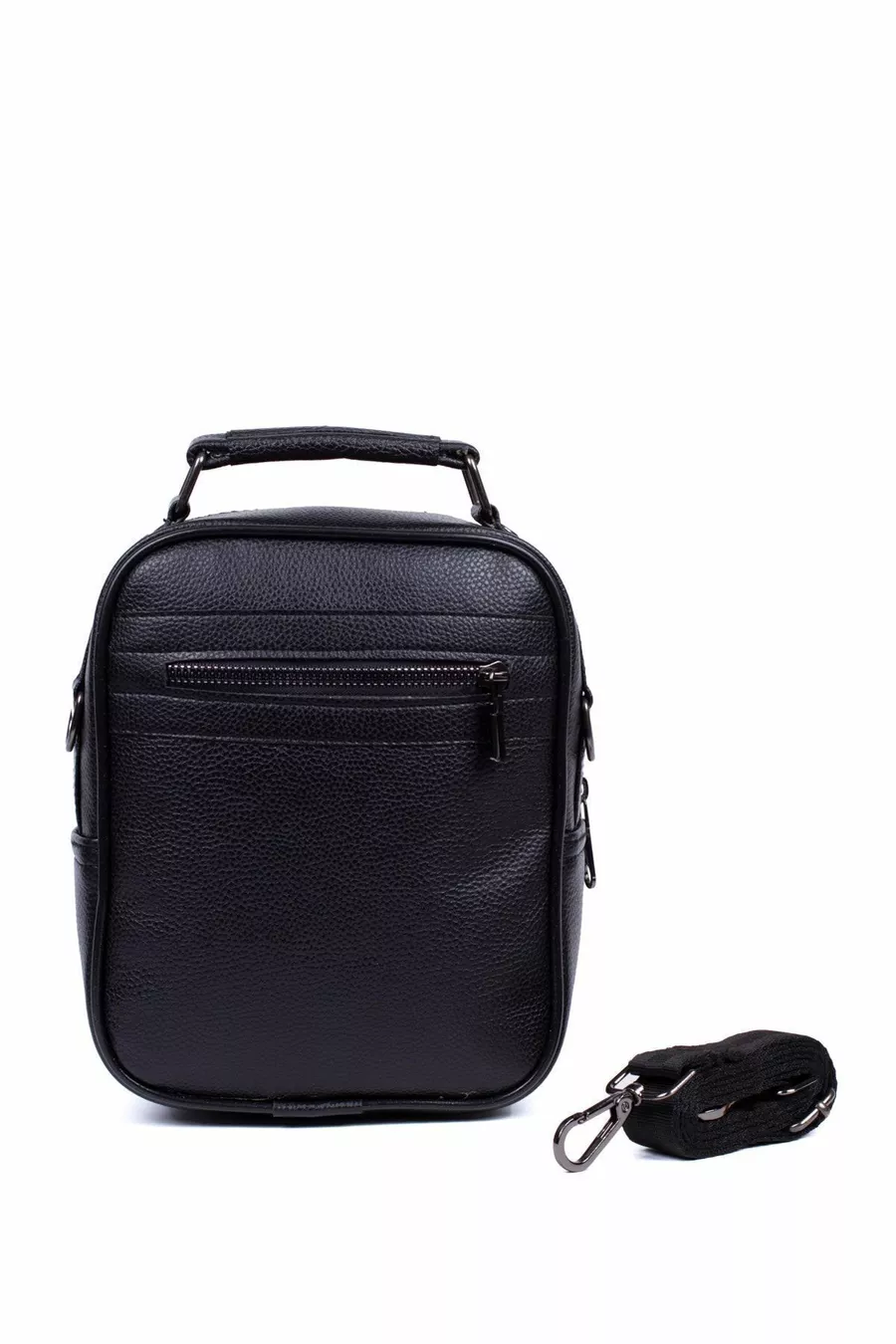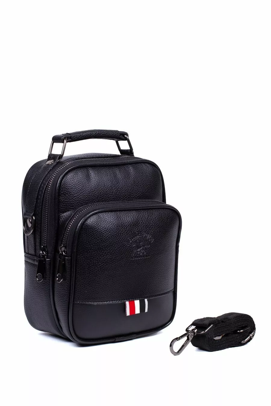 Мъжка веганска кожена чанта и чанта през рамо, мъжка чанта през рамо, черна с отделение за телефон (ГОЛЯМ РАЗМЕР)
