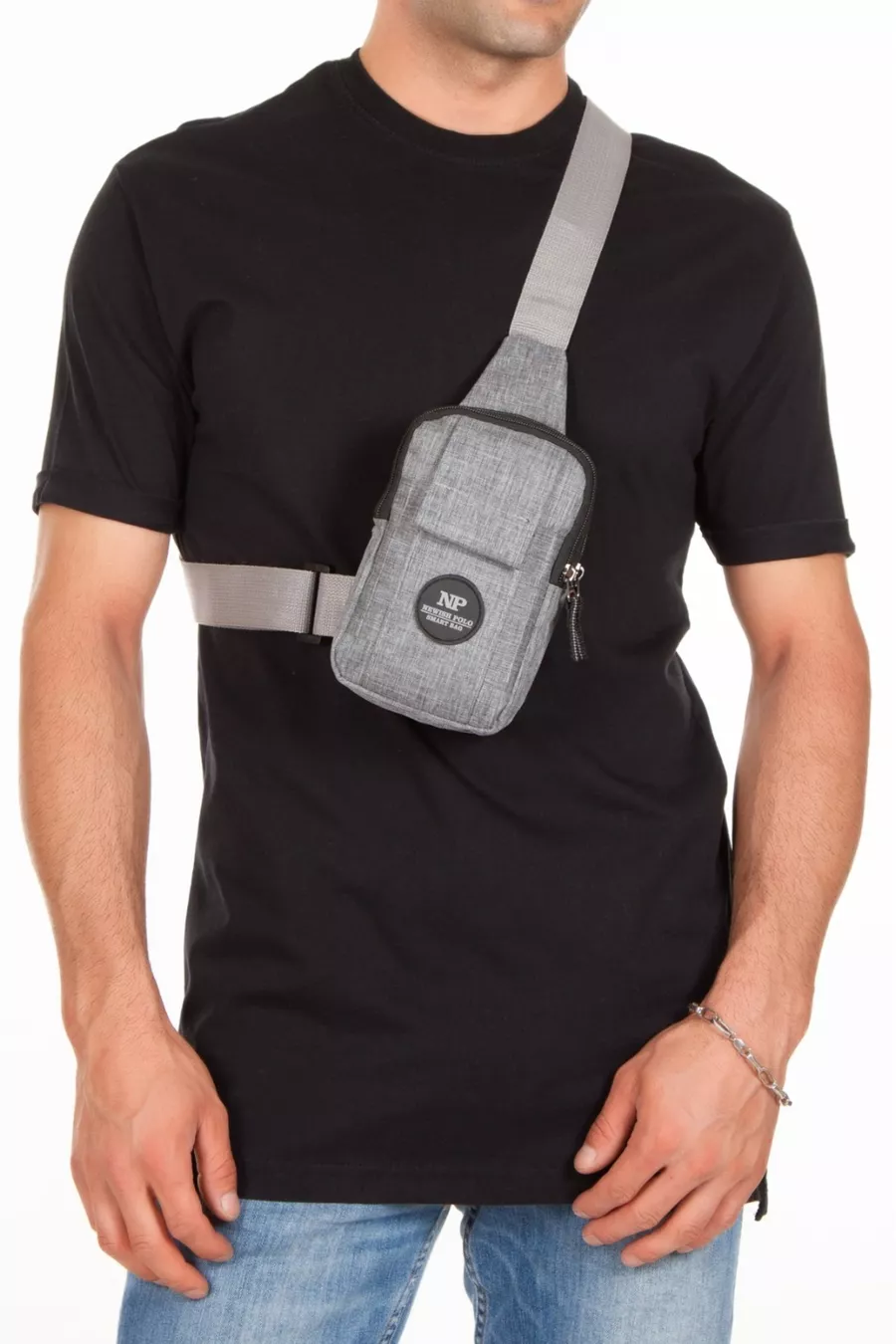 Мъжка ленена чанта за кръст с отделение за телефон Белград - сива